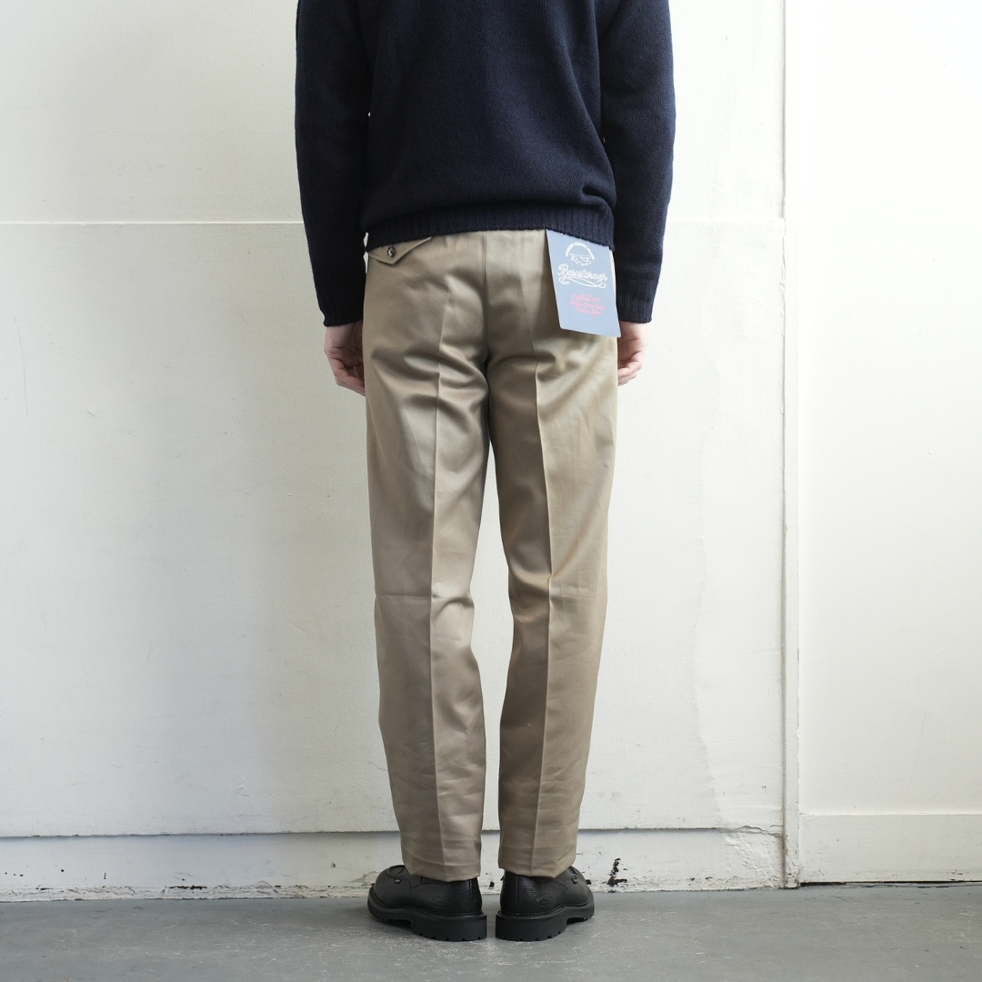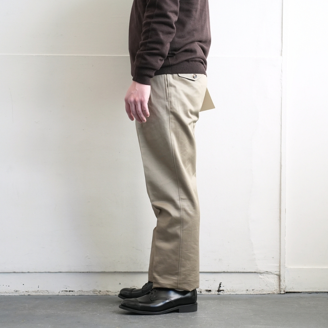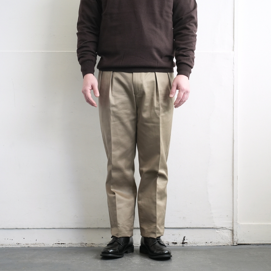 These trousers are a reissue of Douglas MacArthur's favorite trousers as the design source. The front has a classic design with two tucks and watch pockets, and a moderate tapered length.