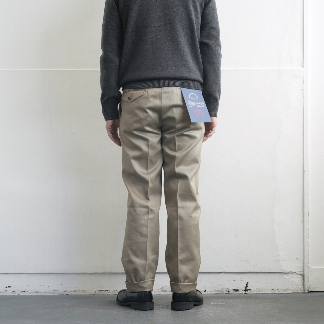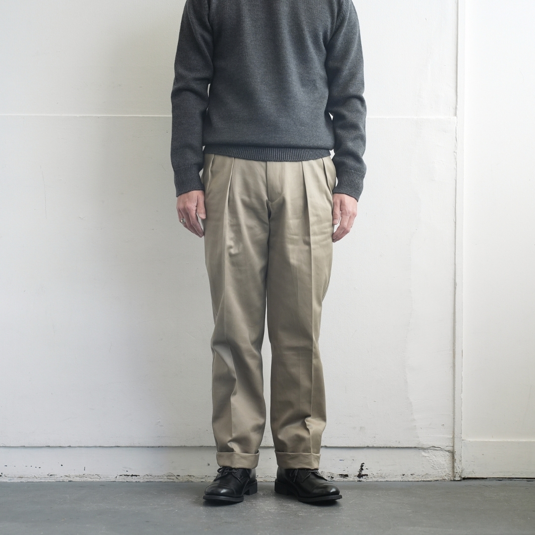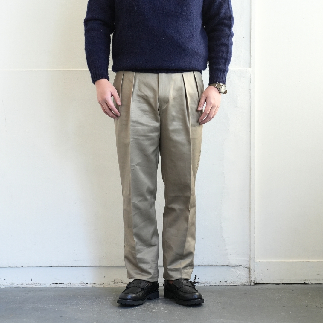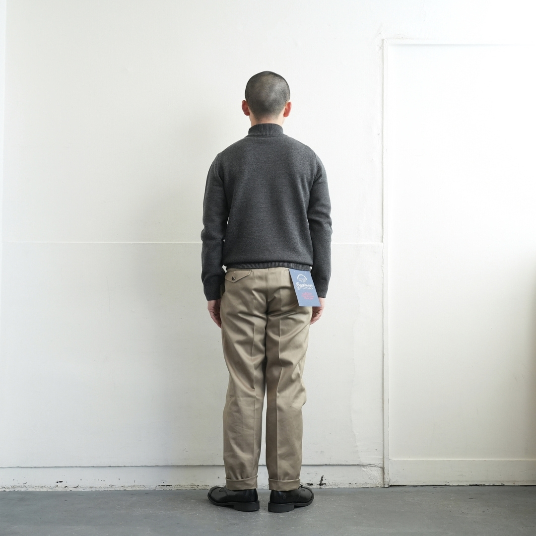 These trousers are a reissue of Douglas MacArthur's favorite trousers as the design source. The front has a classic design with two tucks and watch pockets, and a moderate tapered length.
