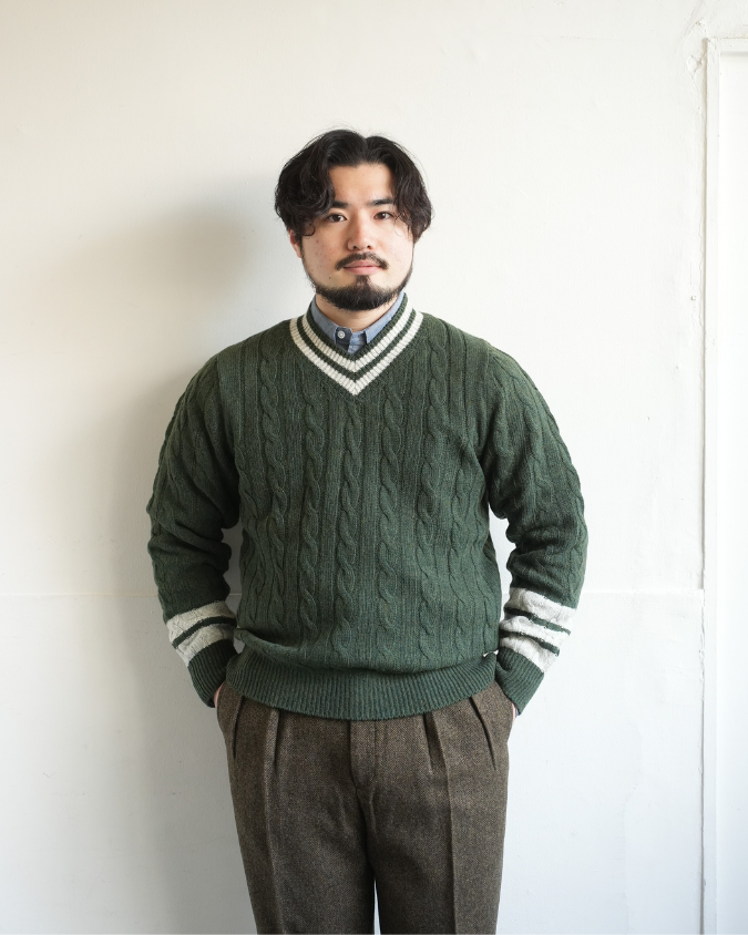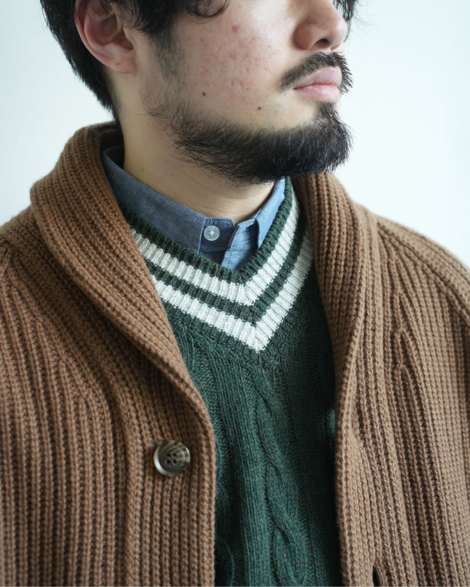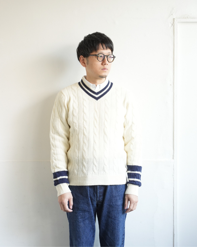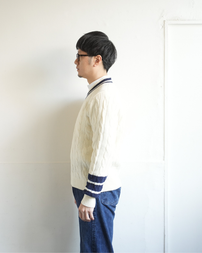 - Rinascente(リナシェンテ) Cable Tilden V-neck PETE "Pete" ケーブル チルデンセーター