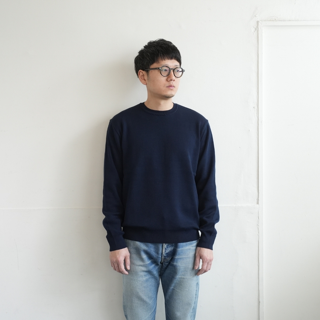 今回ご紹介するのは、3シーズン使えるコットンニット。スウェットのような感覚で着ていただけるニットです。しかしちゃんとニットなのでスウェットにはない品の良さを感じて頂けます。