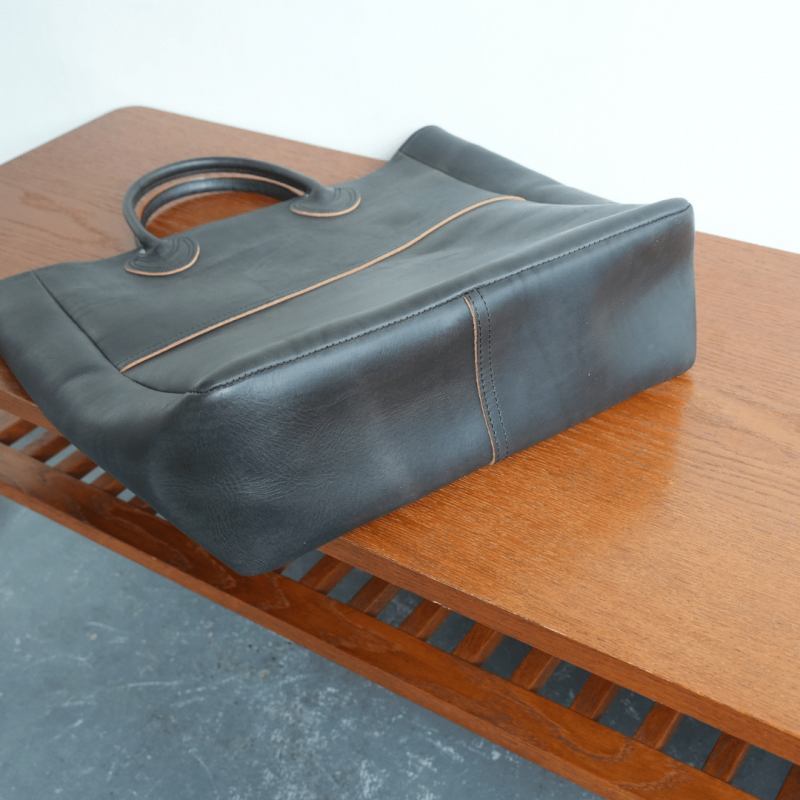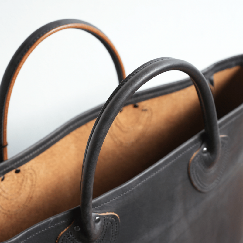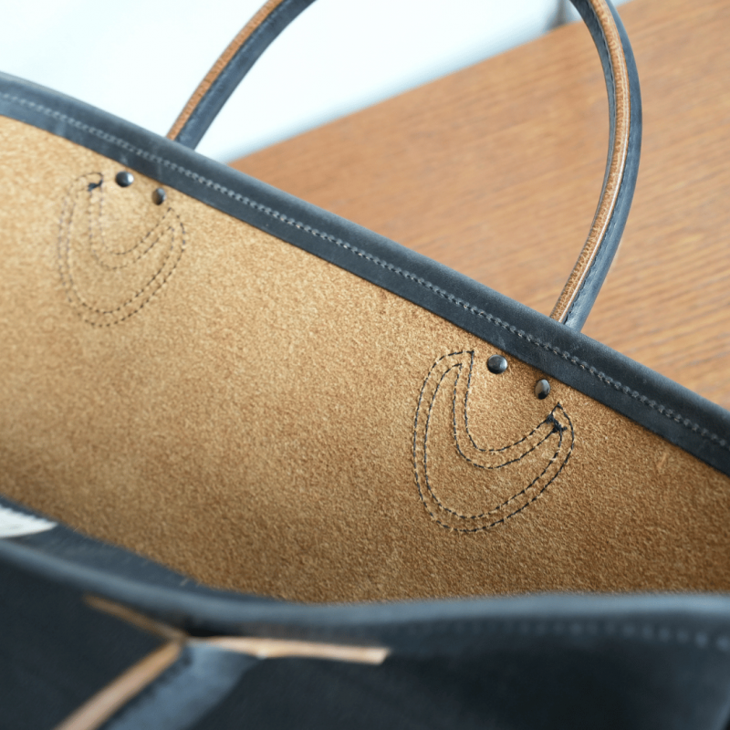 ハンドルは縫い合わせ、コバを磨くことで、美しくソフトな手触りになっております。