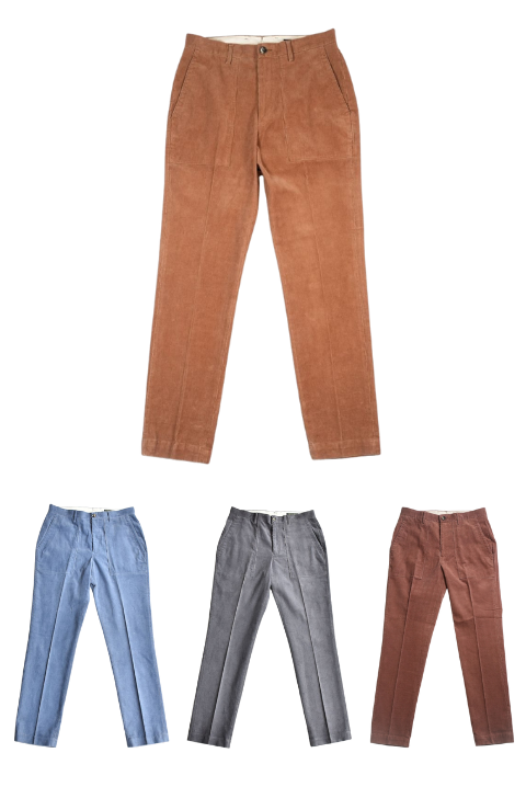 ベルトで腰位置を固定する。穿いた時のウエスト位置が変わると長さも変わってしまいます。ベルトで固定する事が大切です。