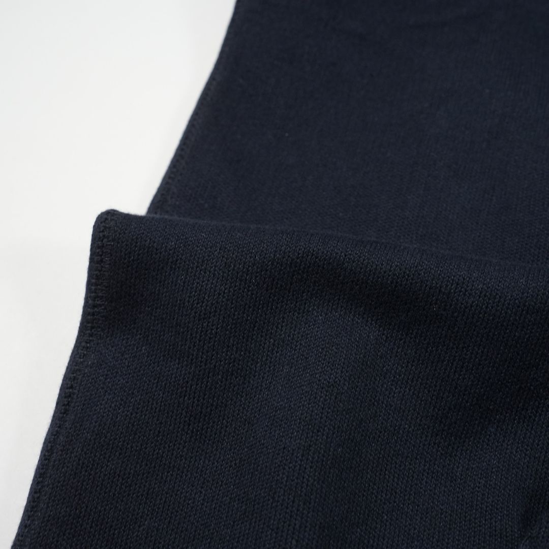 商品を平置きにして、縫い目が十字に交差した部分から10cm下の太もも部分(写真上)を裾と並行にした幅(写真下)をはかっています。