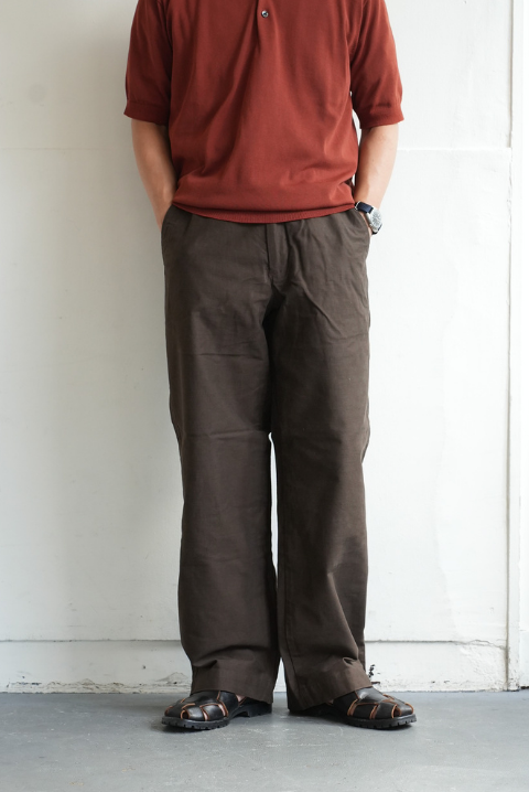 フランスのコックパンツをベースに、BRENAらしい綺麗なバランスで仕上げたイージーパンツ。