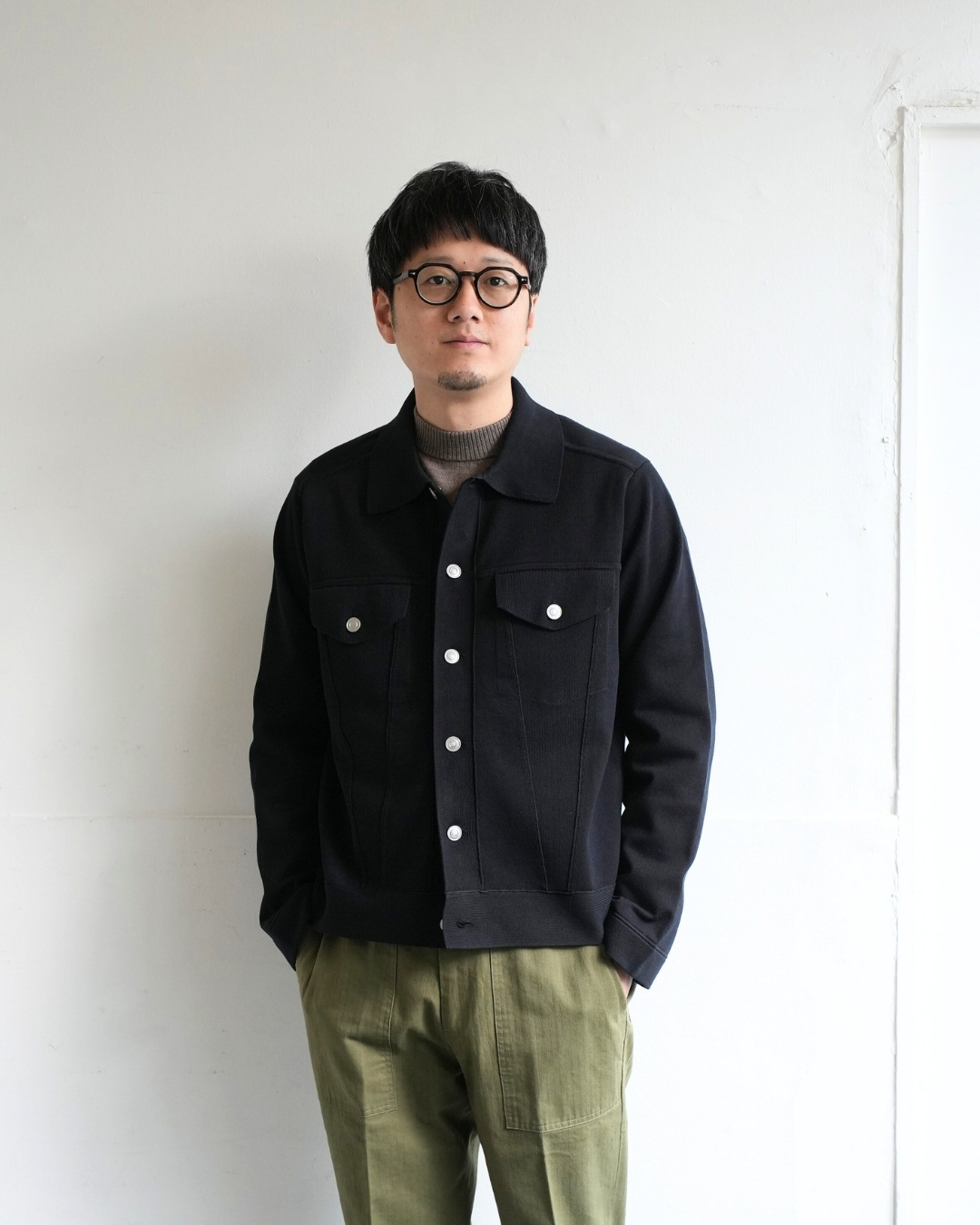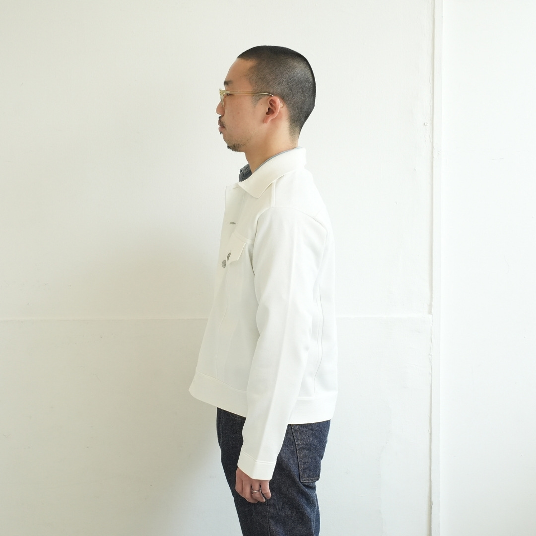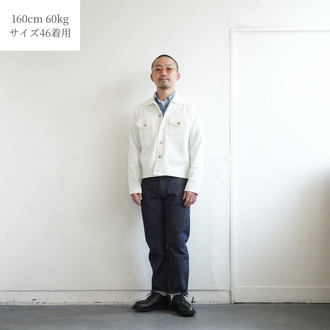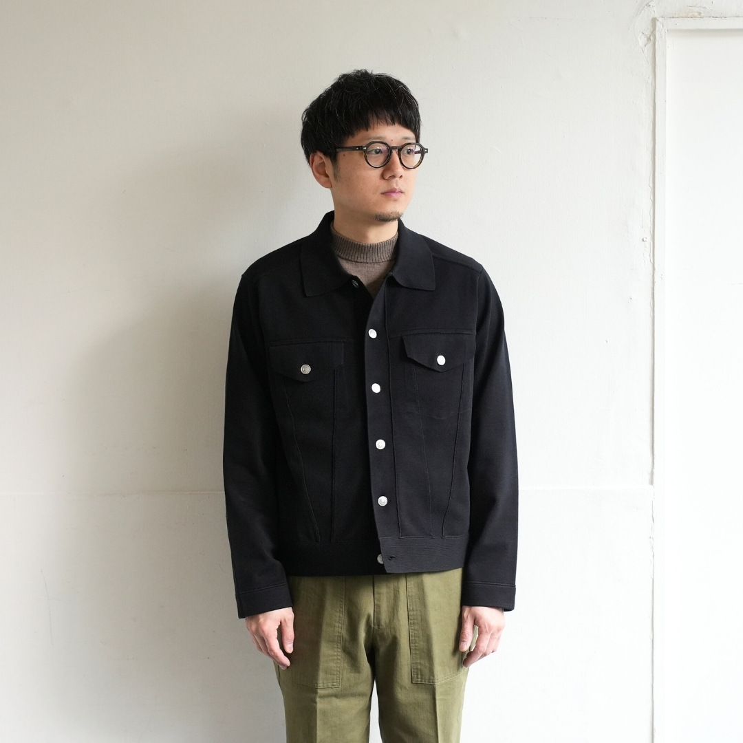 Gジャン型らしいバランスも楽しめながらも、ニットの品の良さを感じられる1枚です。