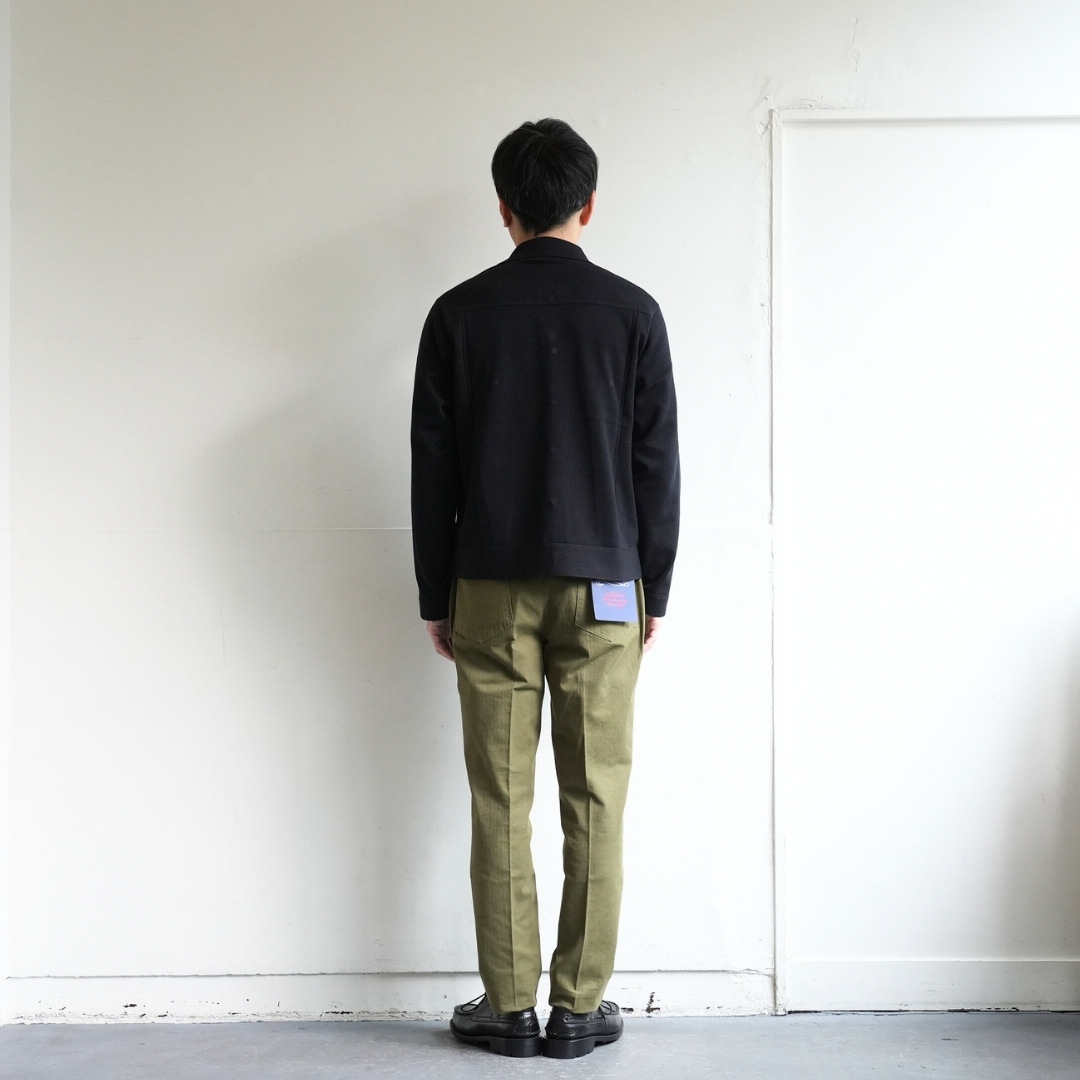 表の綿と裏のポリエステルは異素材ながらも近似色で仕上げており、着用と洗濯を繰り返すことで表の綿が程よくフェードし、裏のポリエステルが顔を出す経年変化も楽しめる仕様です。