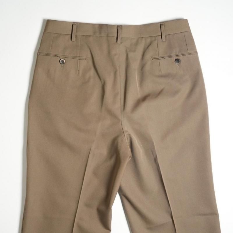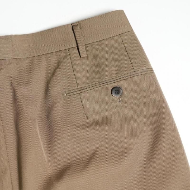 商品を平置きにして、ボタンを留めたパンツのウエスト幅をはかって、2倍にしています。