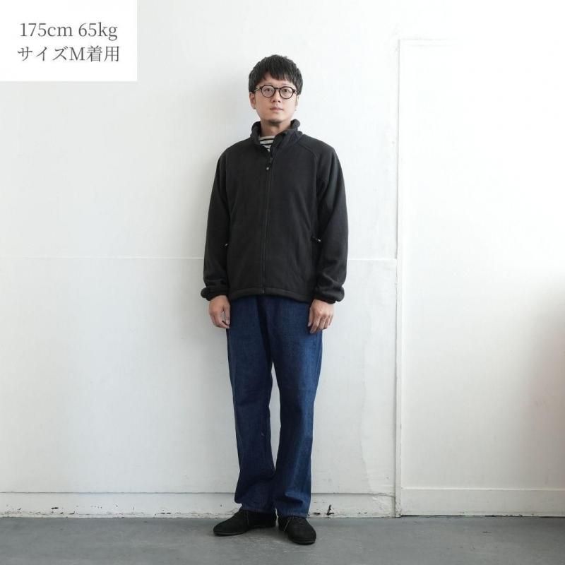 商品を平置きにして、ボタンを留めたパンツのウエスト幅をはかって、2倍にしています。