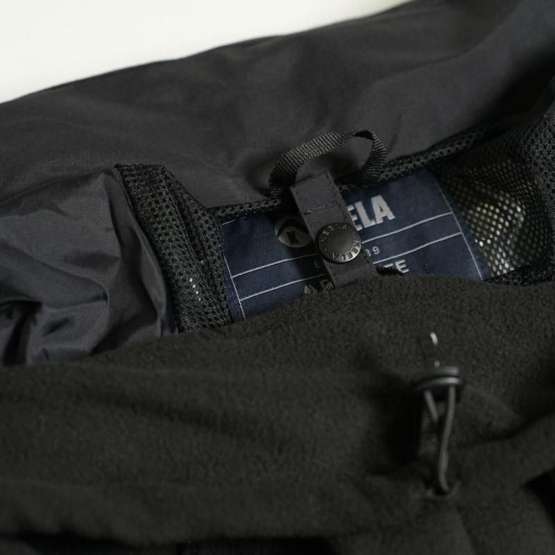 商品を平置きにして、首の付け根部分(写真左)から袖先(写真右)までの長さをはかっています。