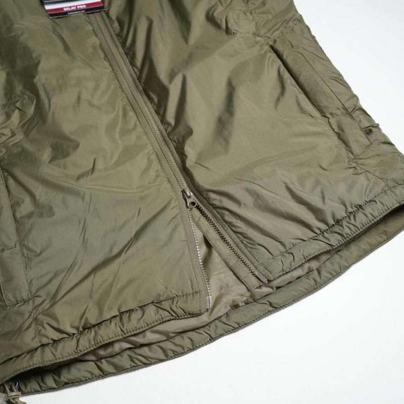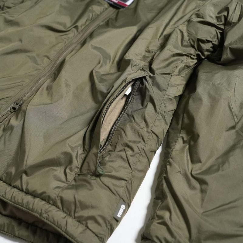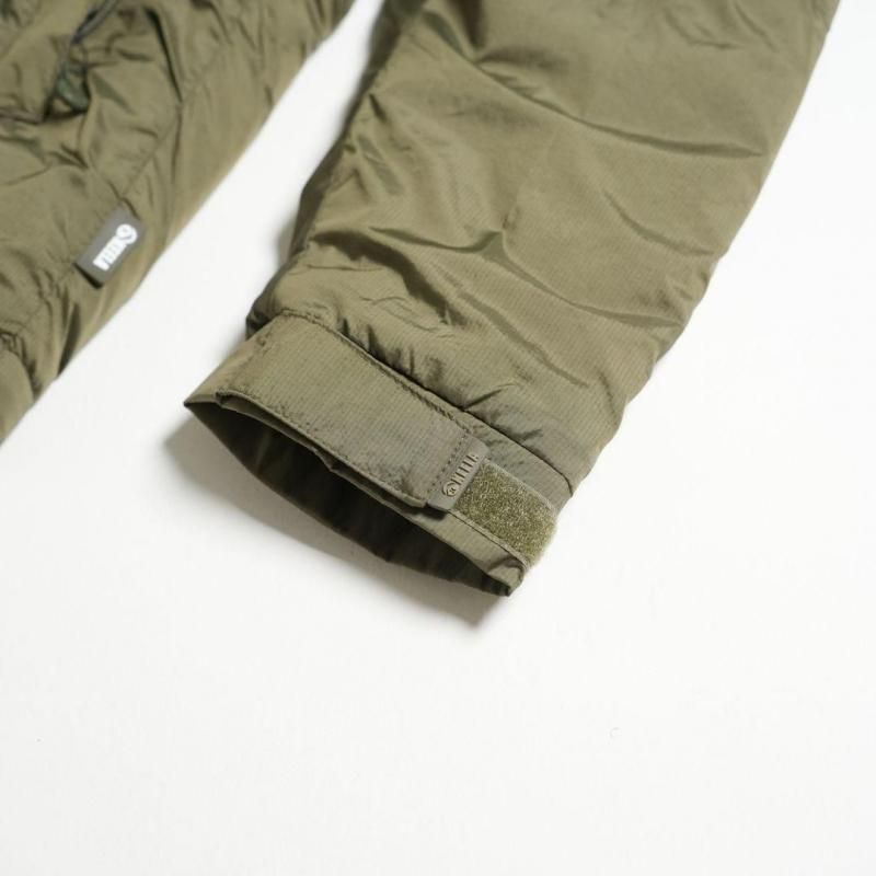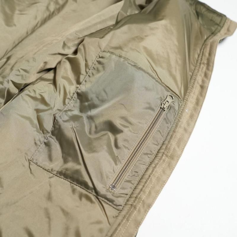 商品を平置きにして、首の付け根部分(写真左)から袖先(写真右)までの長さをはかっています。