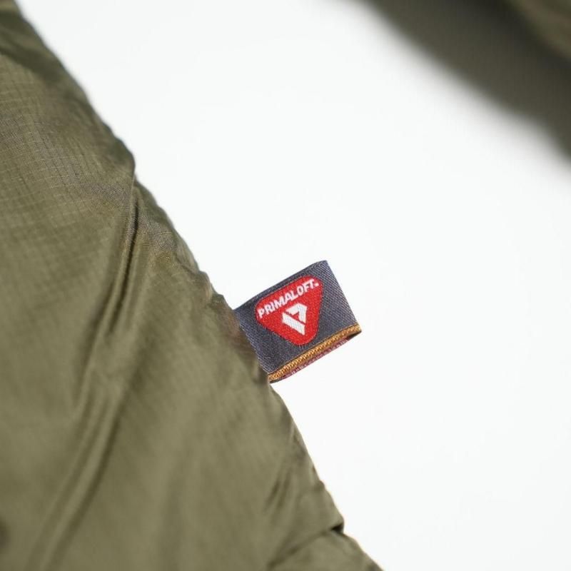 商品を平置きにして、肩先の縫い目から、袖先までの直線距離をはかっています。