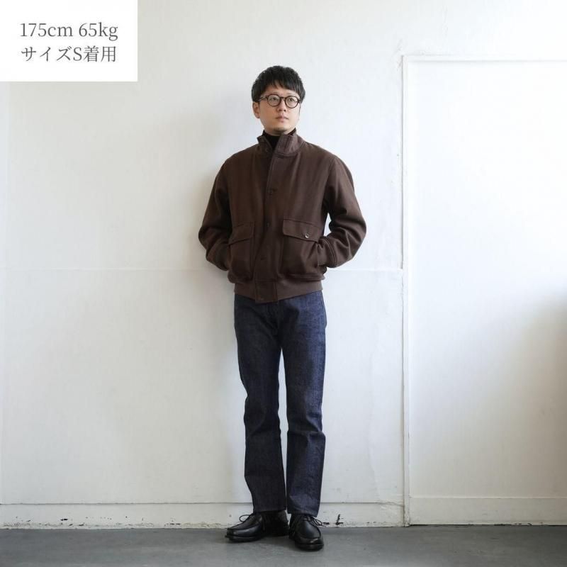 Sサイズが適正サイズです。インナーには厚手のセーター・スウェットを着込んでも問題ないサイズ感です。裏地も付くので真冬まで対応可能なブルゾンです