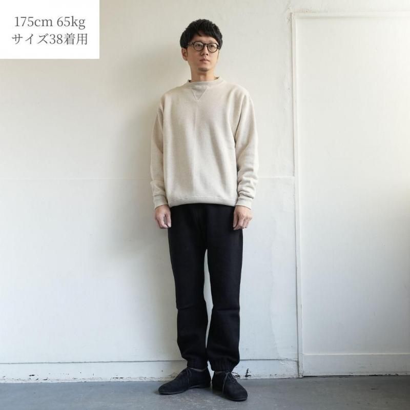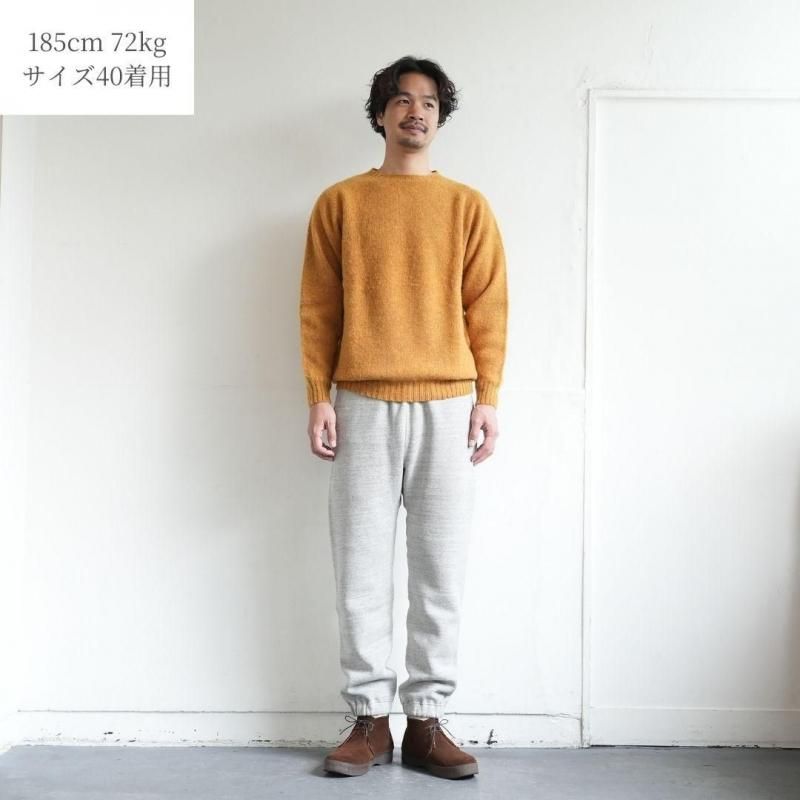 太くも細くもないジャストなバランスで、ヒップも小ぶりでだらしなく見えない大人の為のスウェットパンツです。レングスは堪りますが、縮みが入って丁度良くなります。
