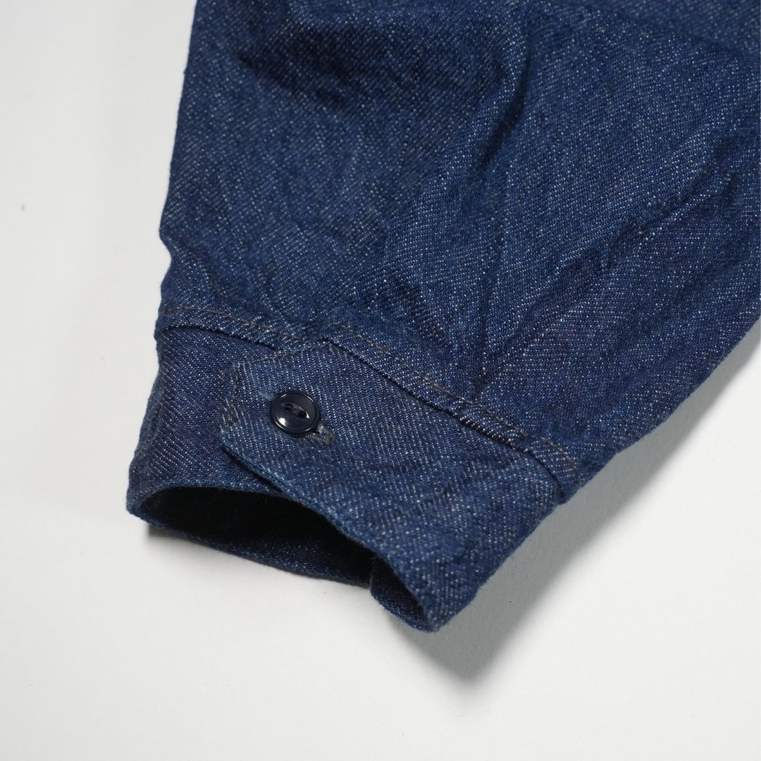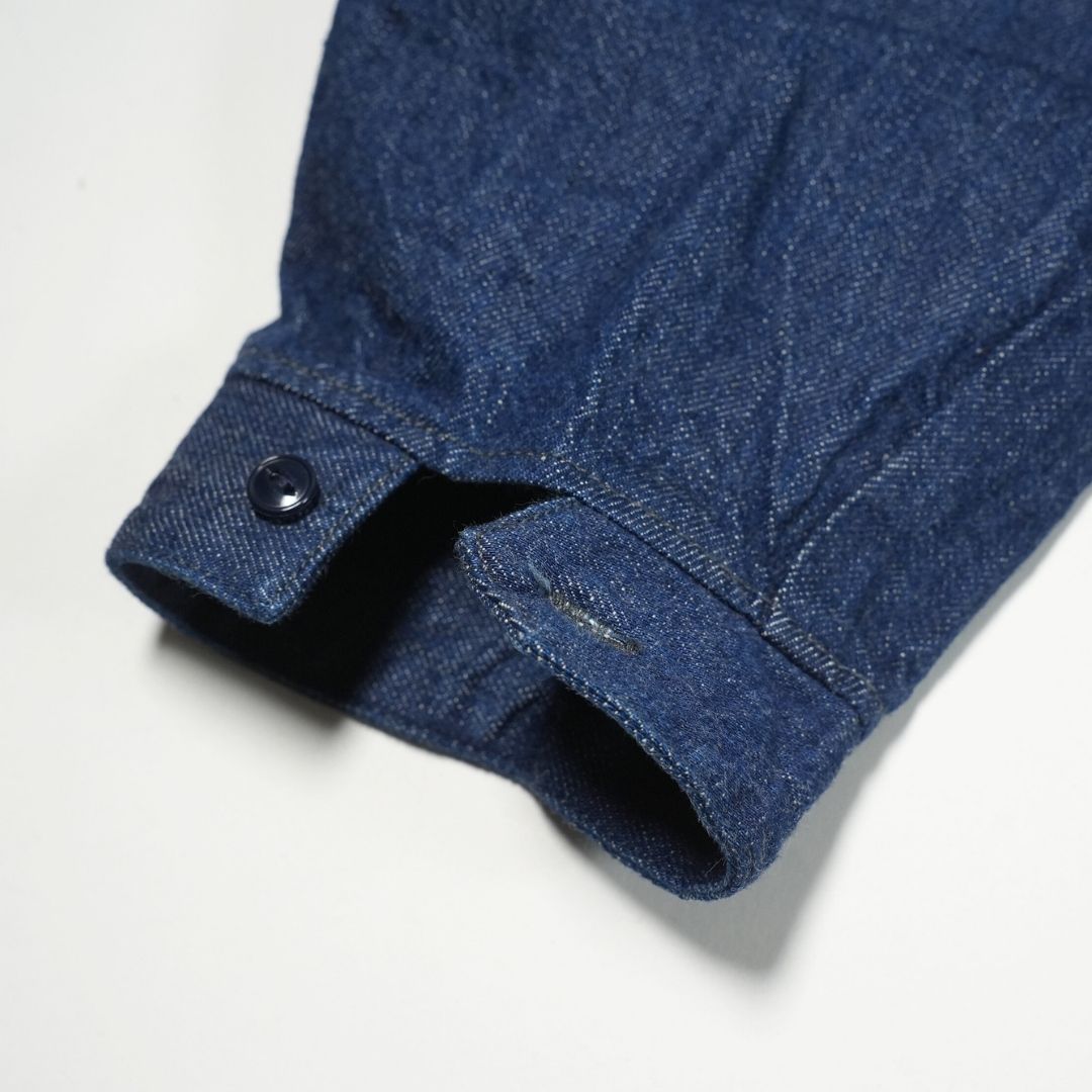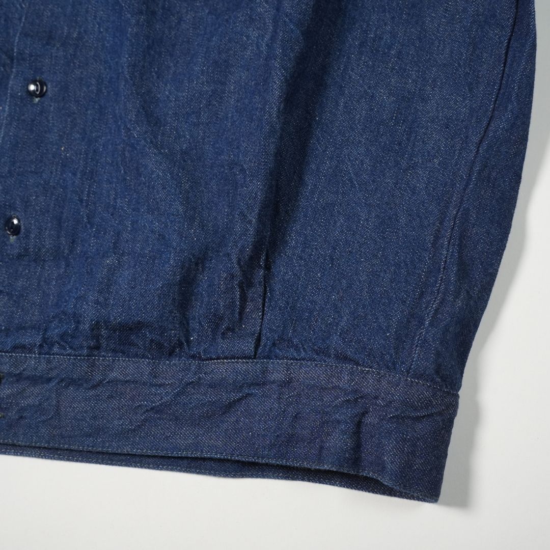 商品を平置きにして、首の付け根部分(写真左)から袖先(写真右)までの長さをはかっています。