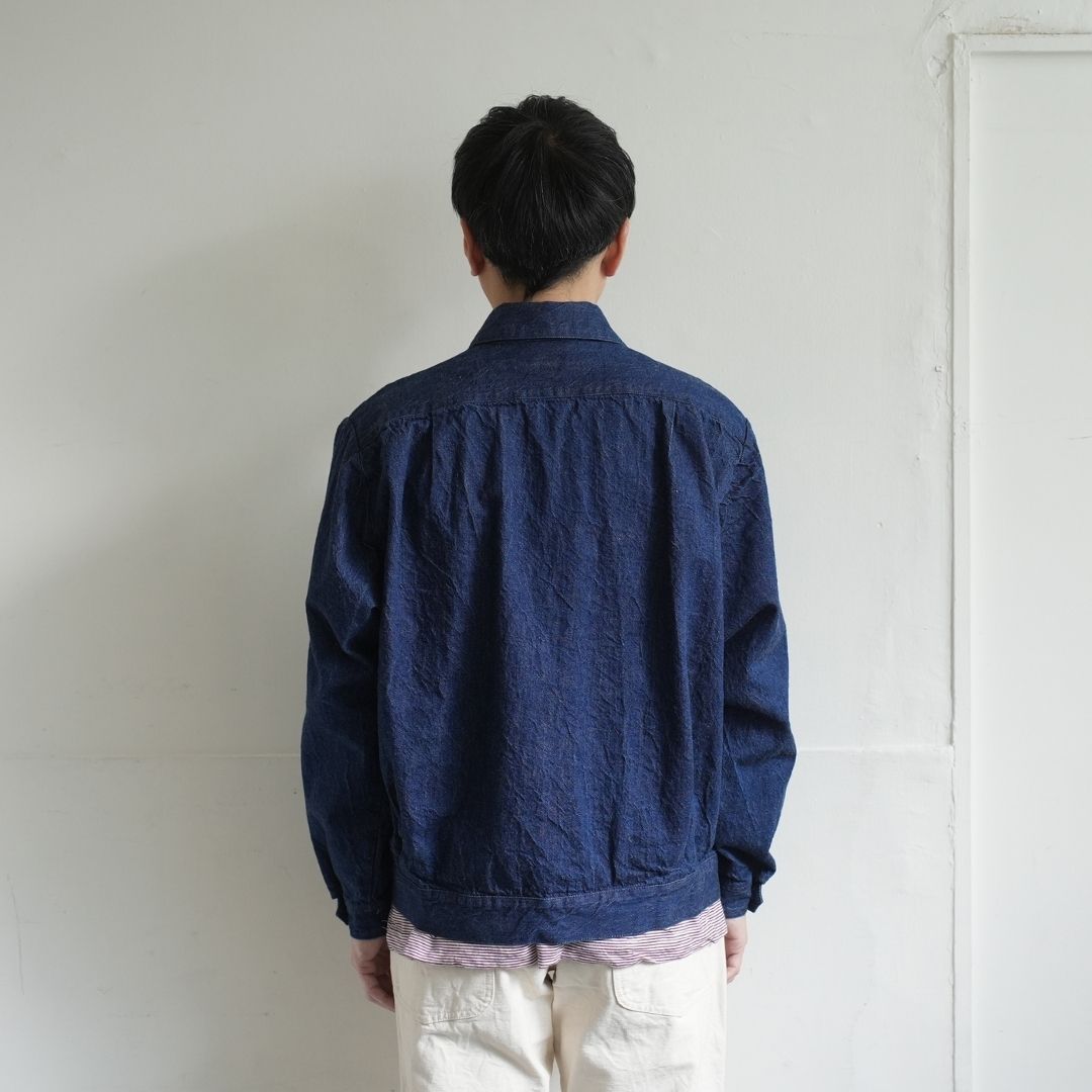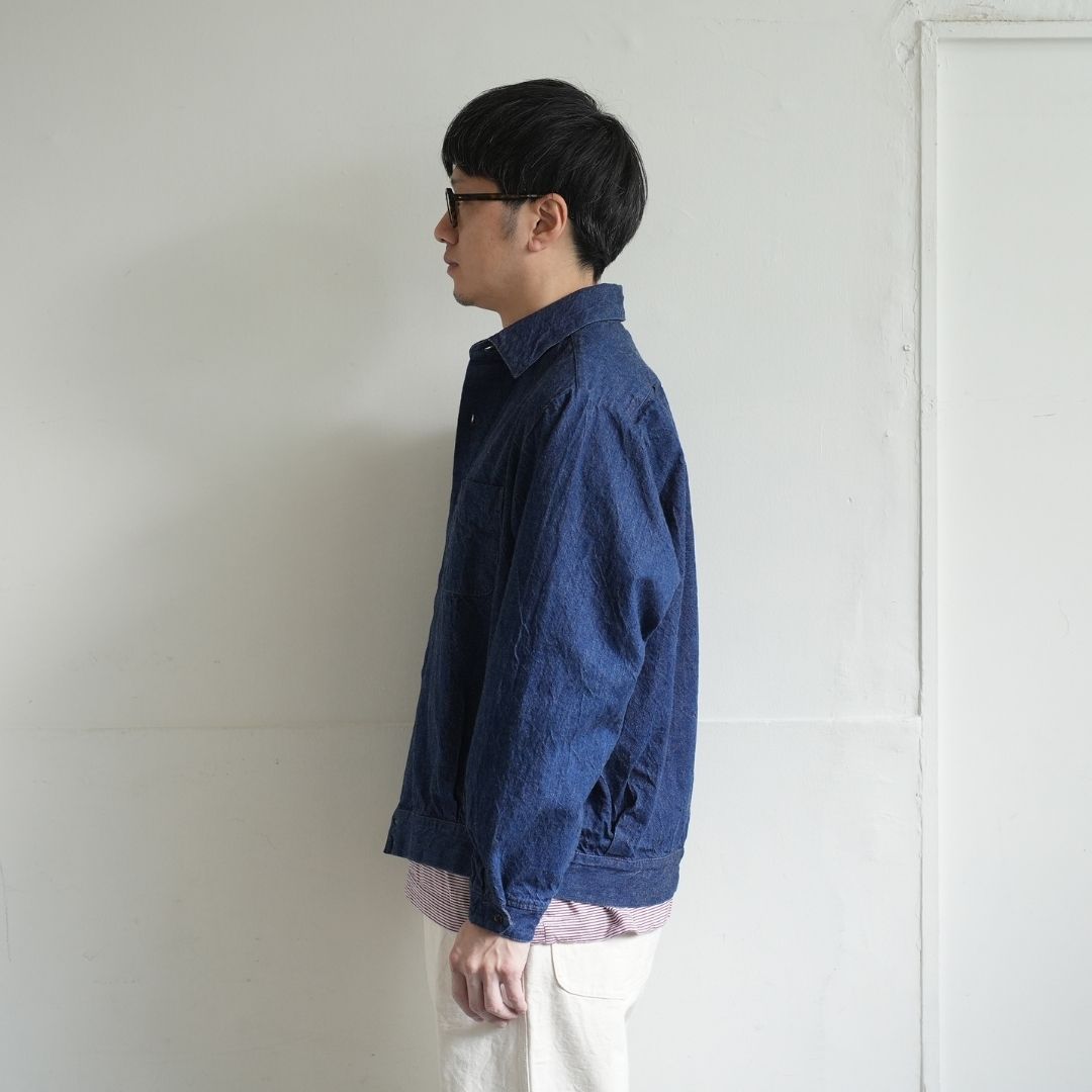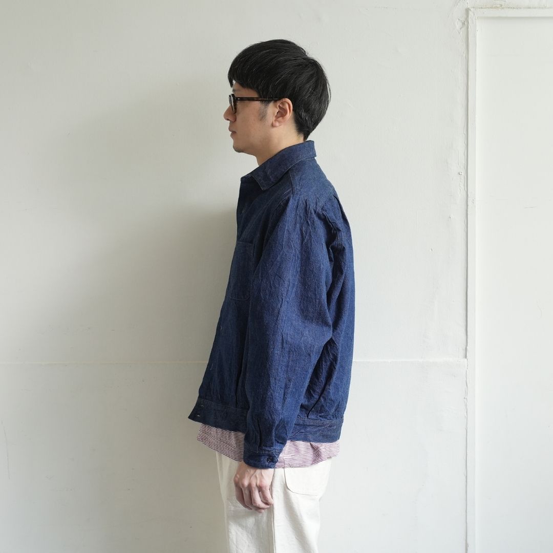 商品を平置きにして、首の付け根部分(写真左)から袖先(写真右)までの長さをはかっています。