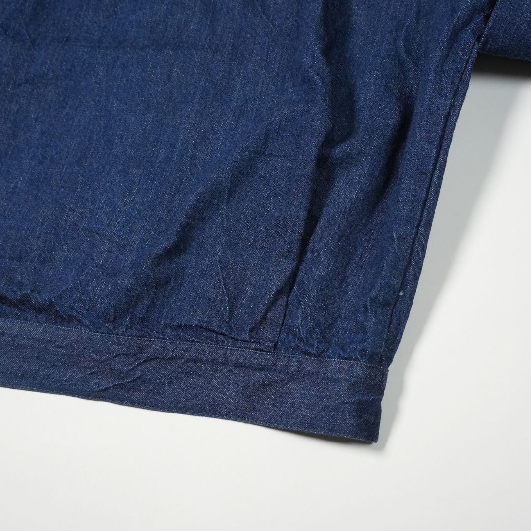 商品を平置きにして、縫い目が十字に交差した部分から10cm下の太もも部分(写真上)を裾と並行にした幅(写真下)をはかっています。