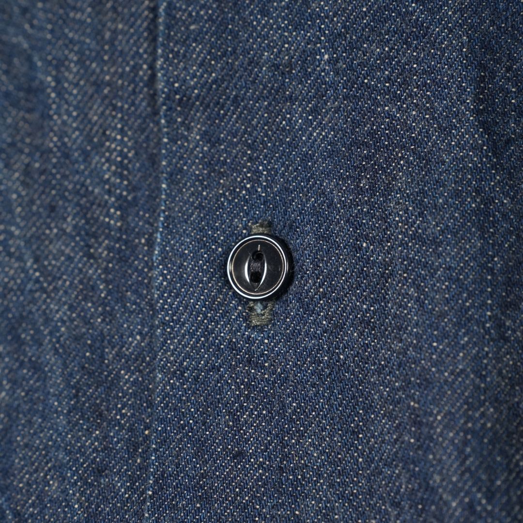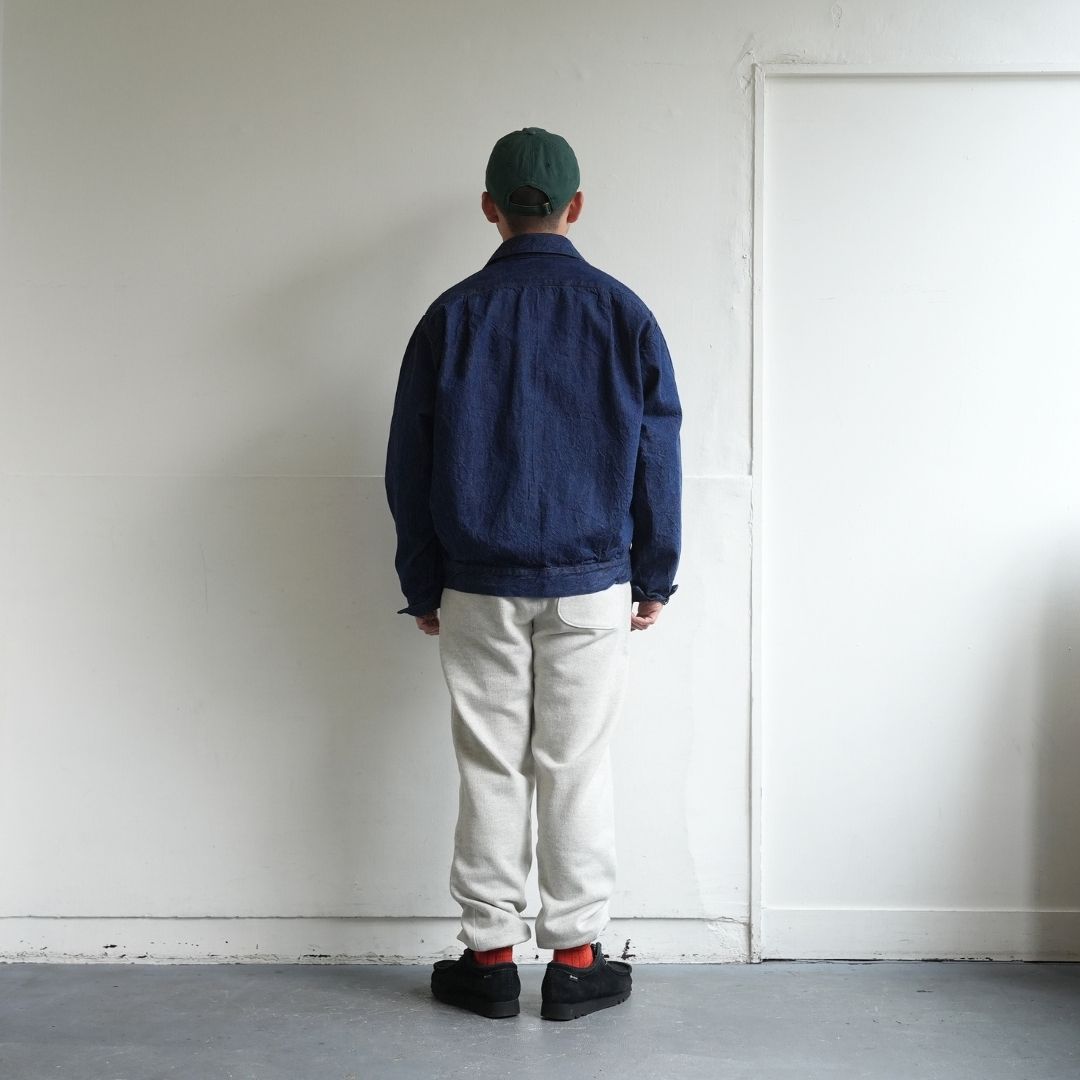 商品を平置きにして、ボタンを留めたパンツのウエスト幅をはかって、2倍にしています。