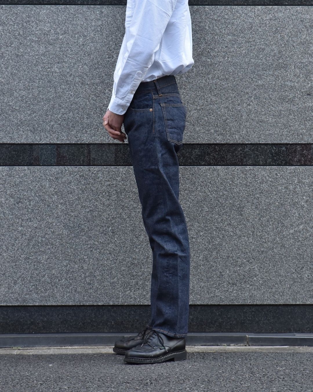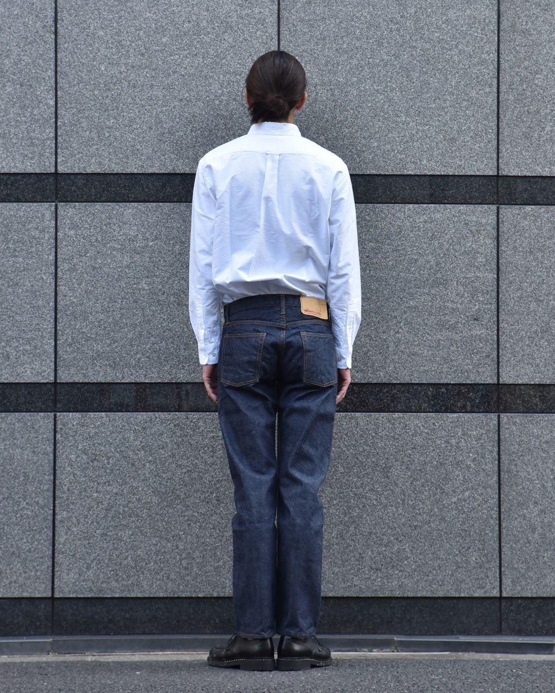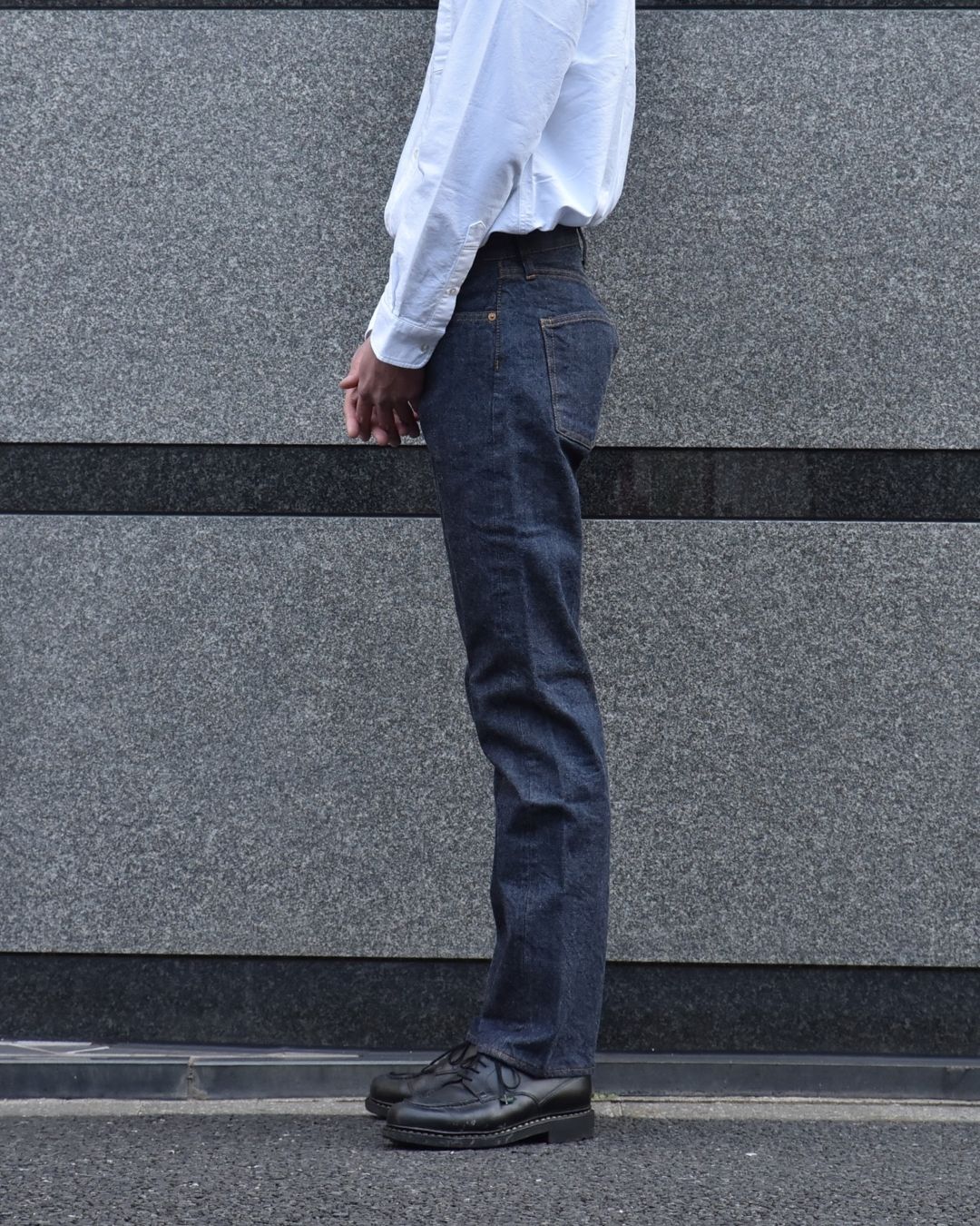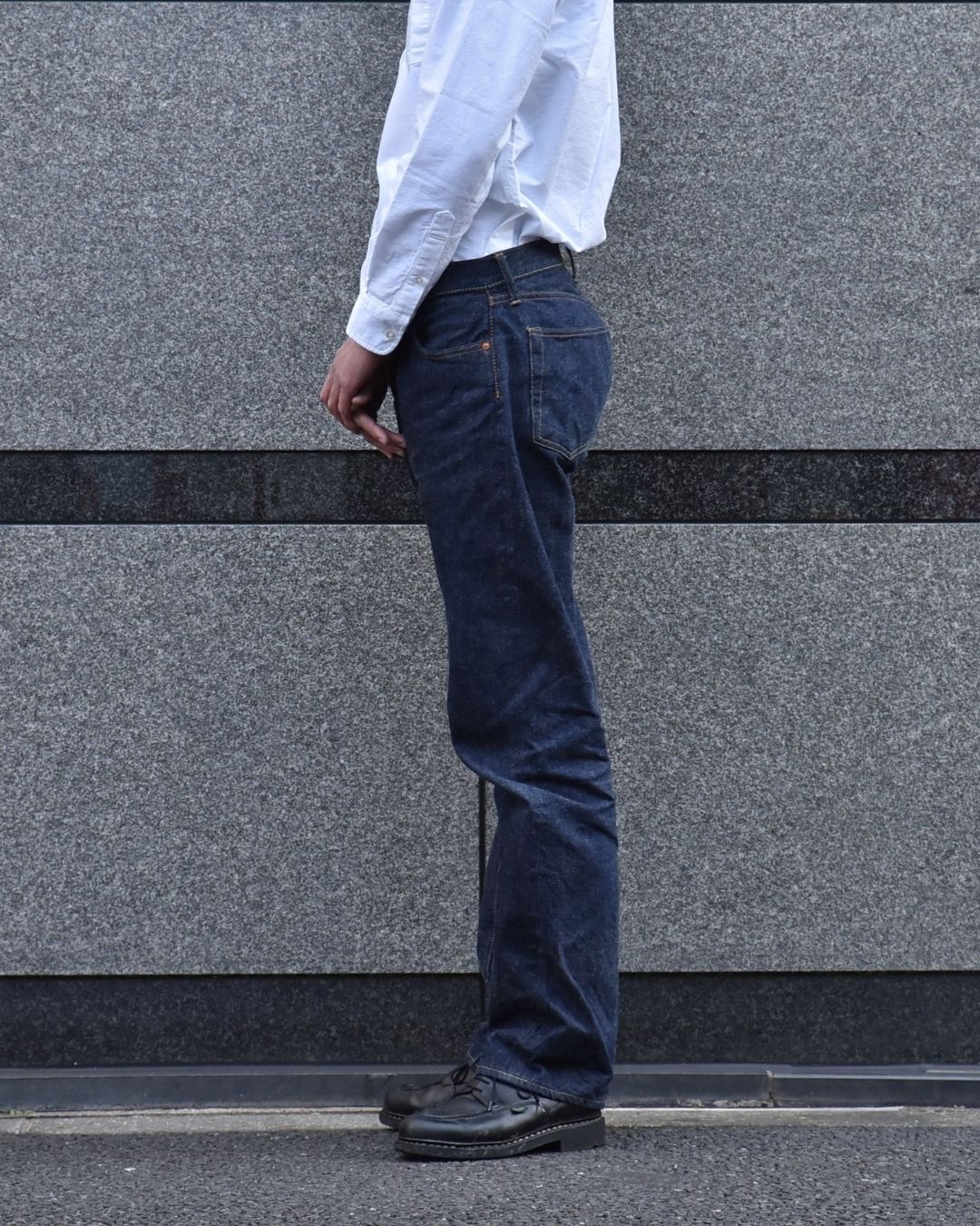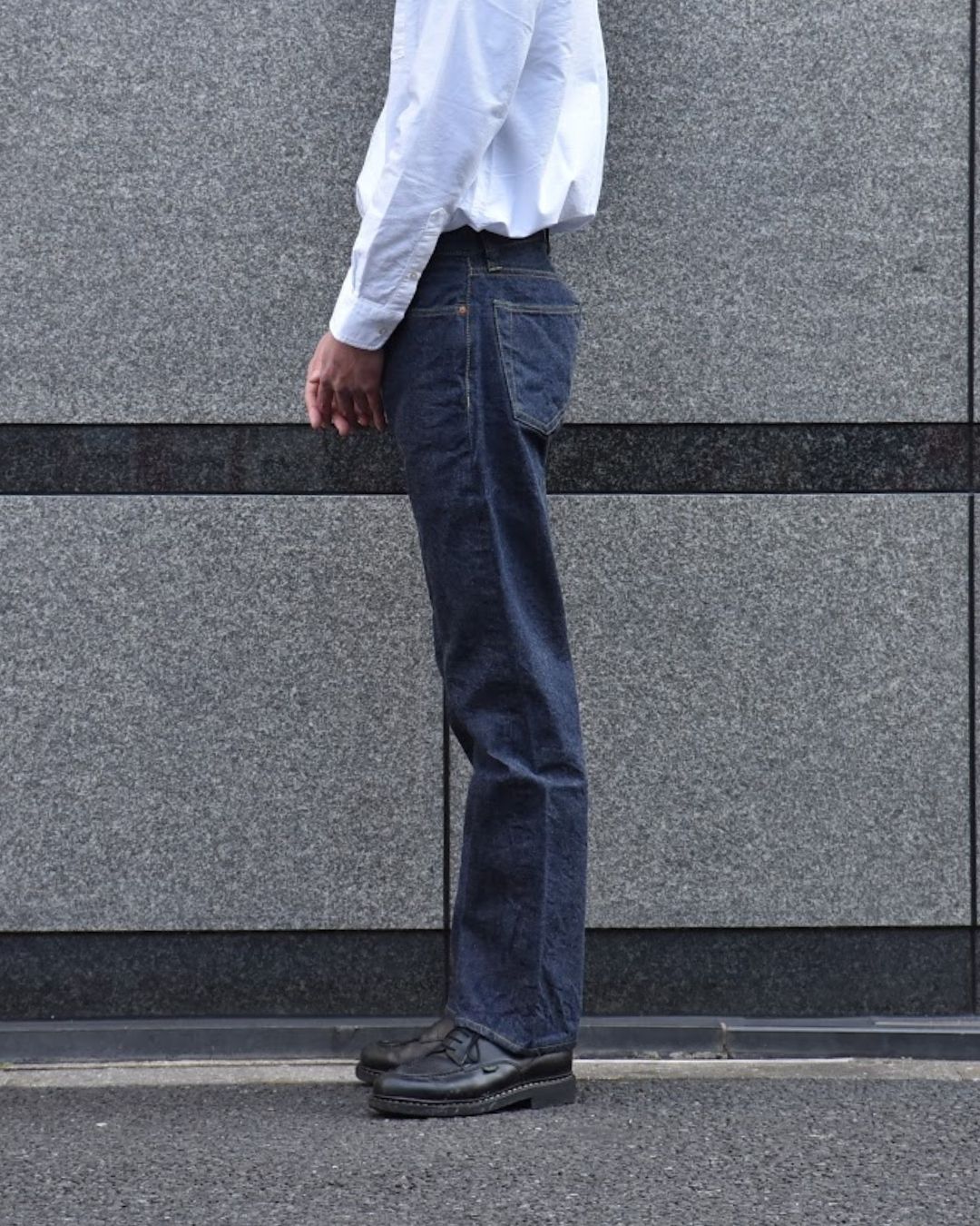 ベルトで腰位置を固定する。穿いた時のウエスト位置が変わると長さも変わってしまいます。ベルトで固定する事が大切です。