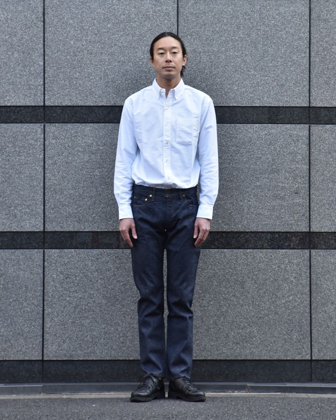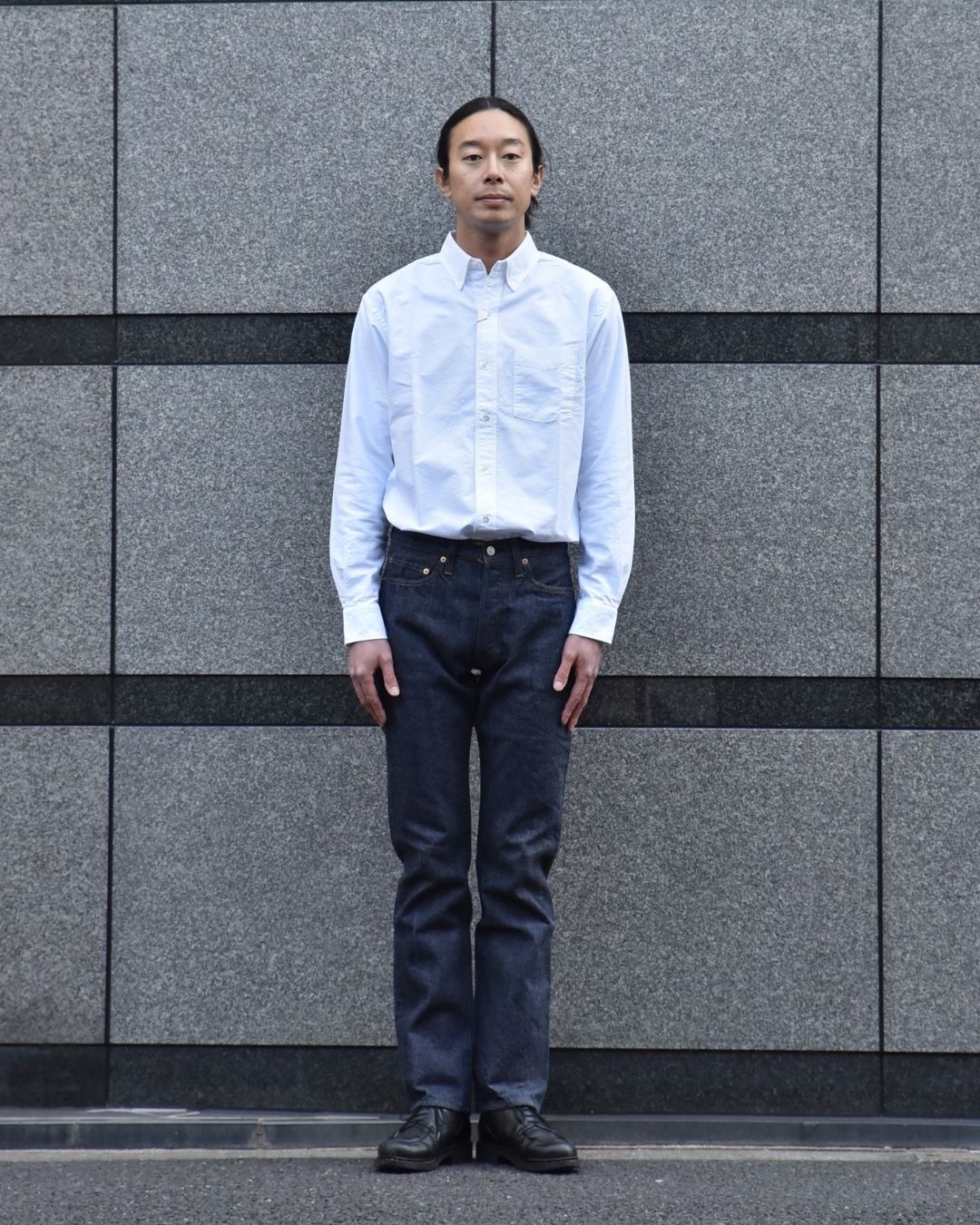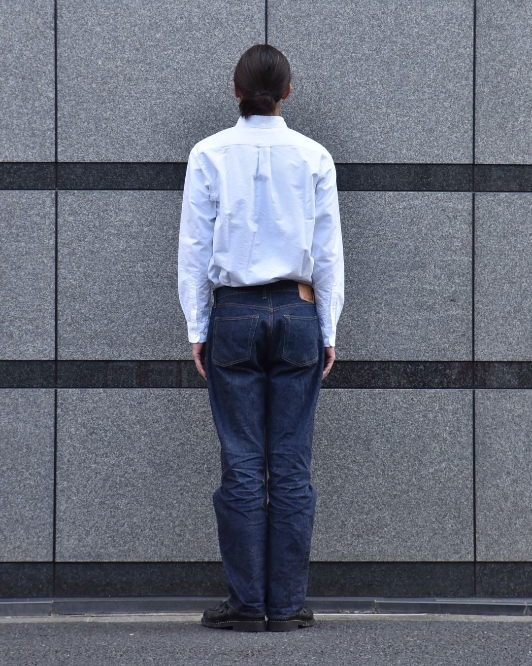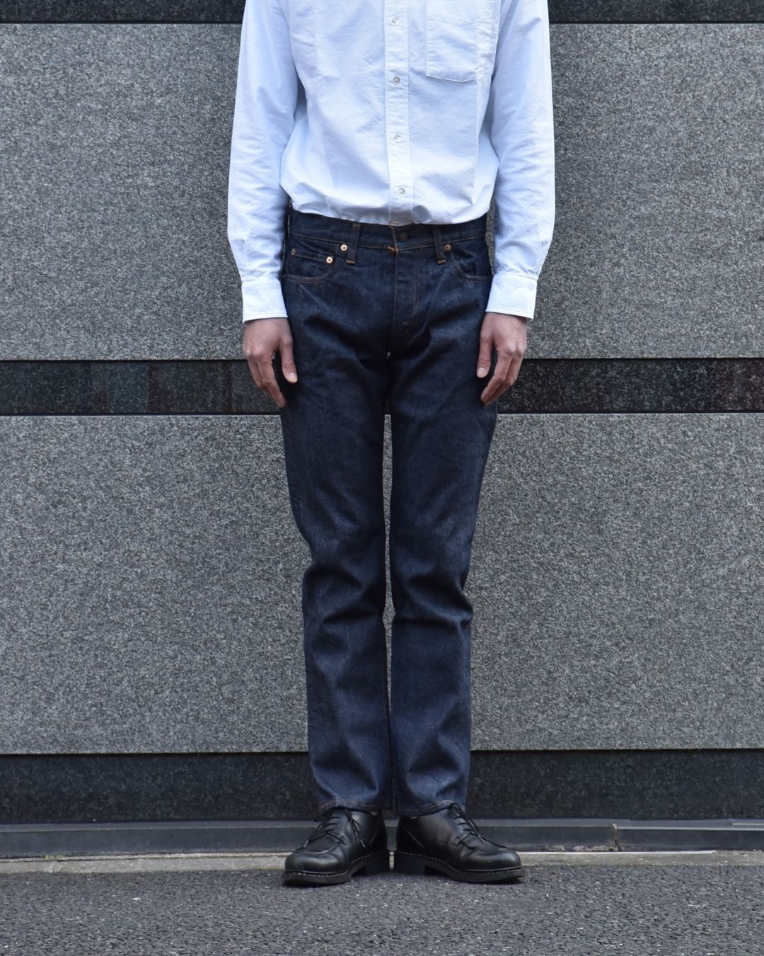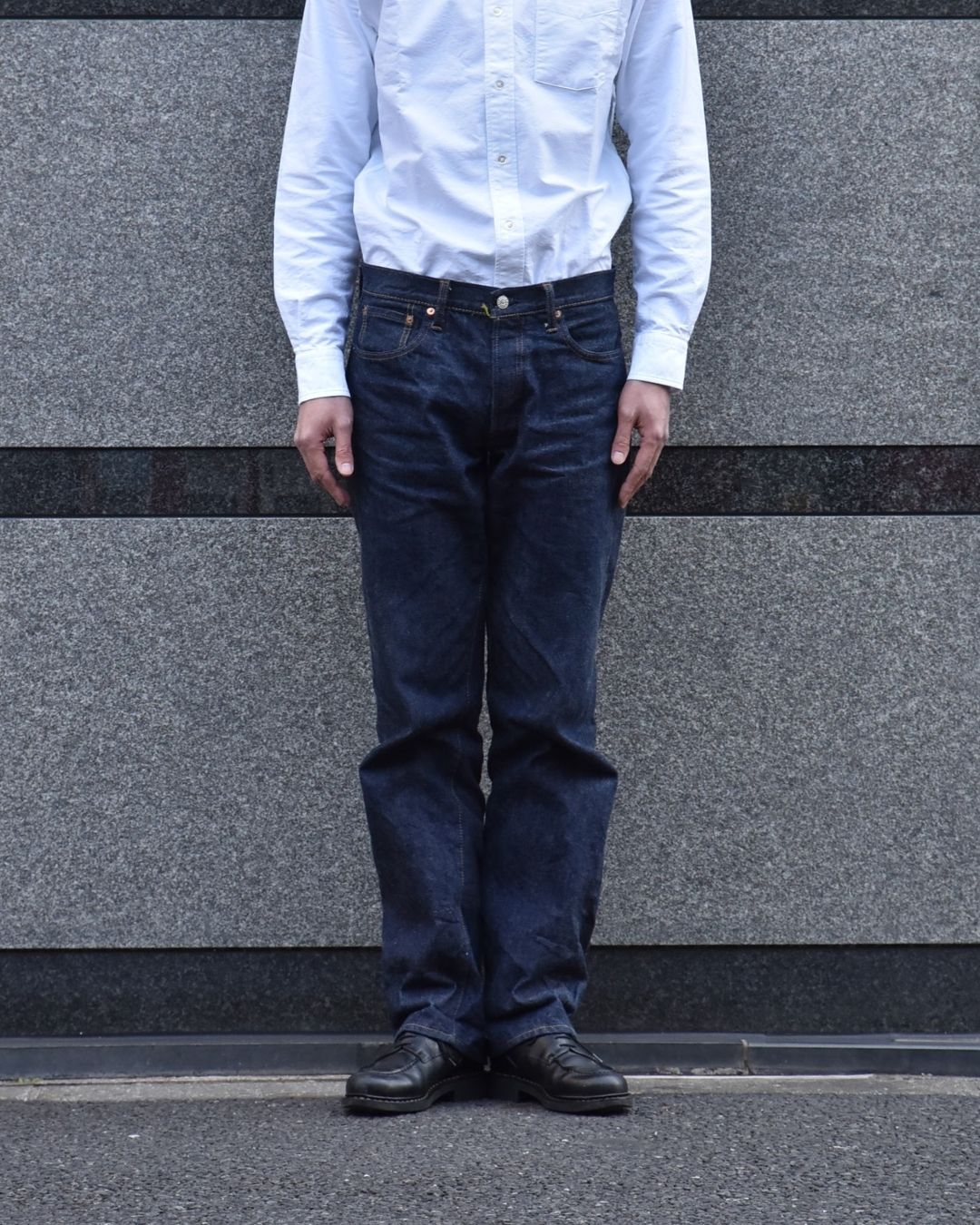 ベルトで腰位置を固定する。穿いた時のウエスト位置が変わると長さも変わってしまいます。ベルトで固定する事が大切です。