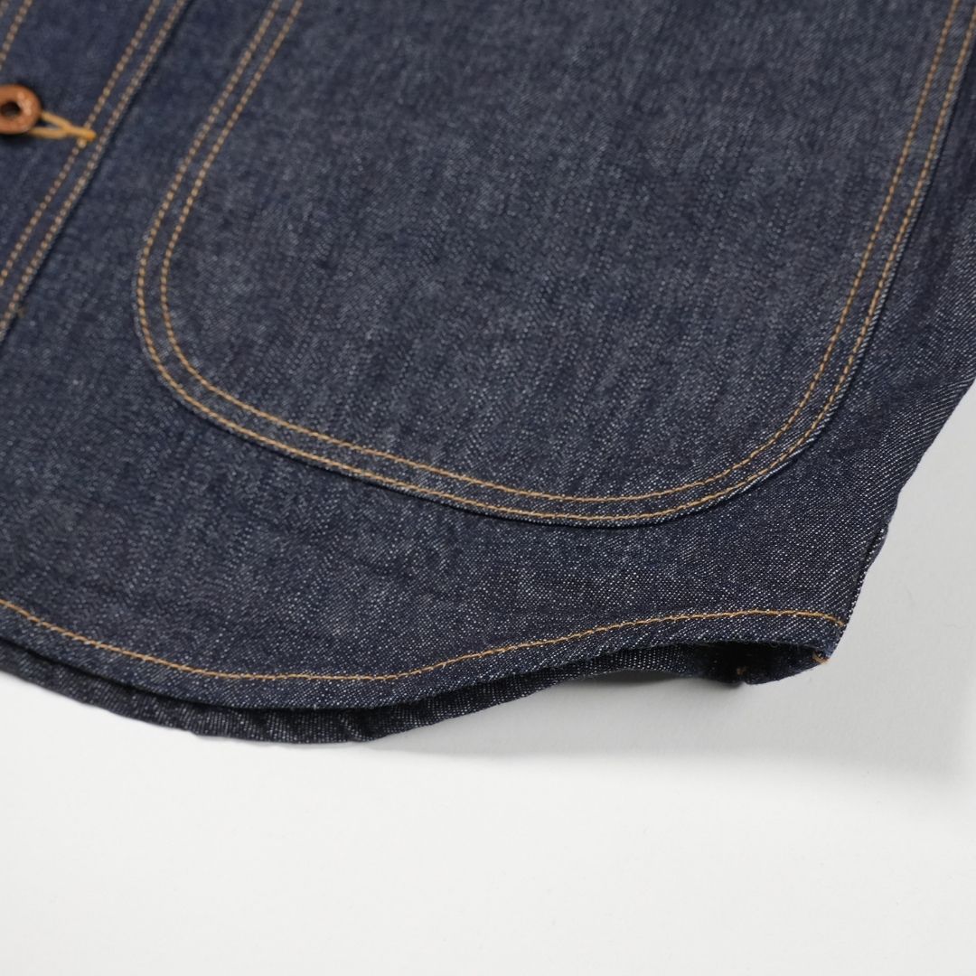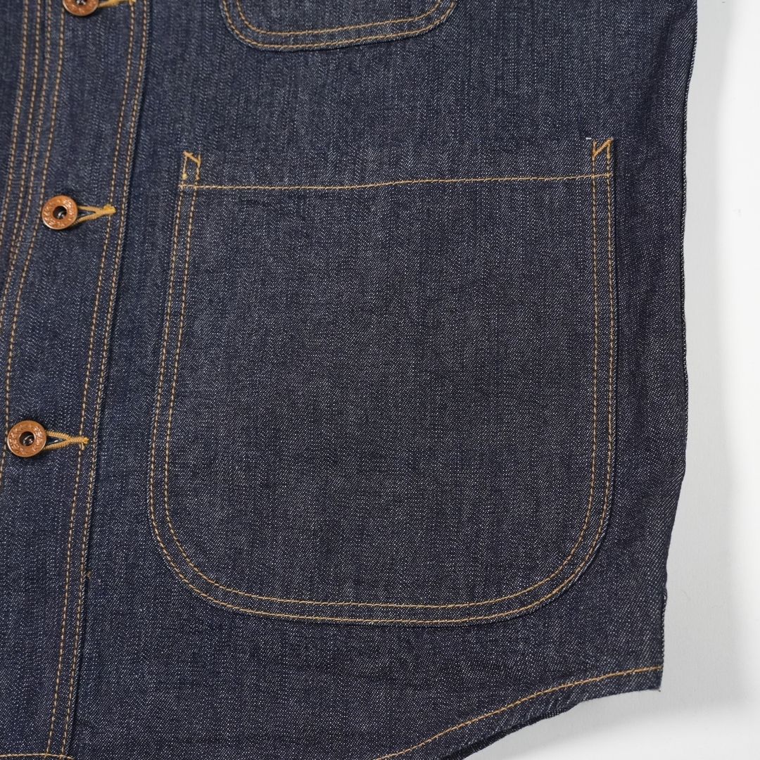 その名の通り室内でエンジニアたちが使う事を想定したディティールワークとなっており、しゃがんだり作業をする際に邪魔にならないように丈を短く設定し、襟もノーカラーなのが特徴です。