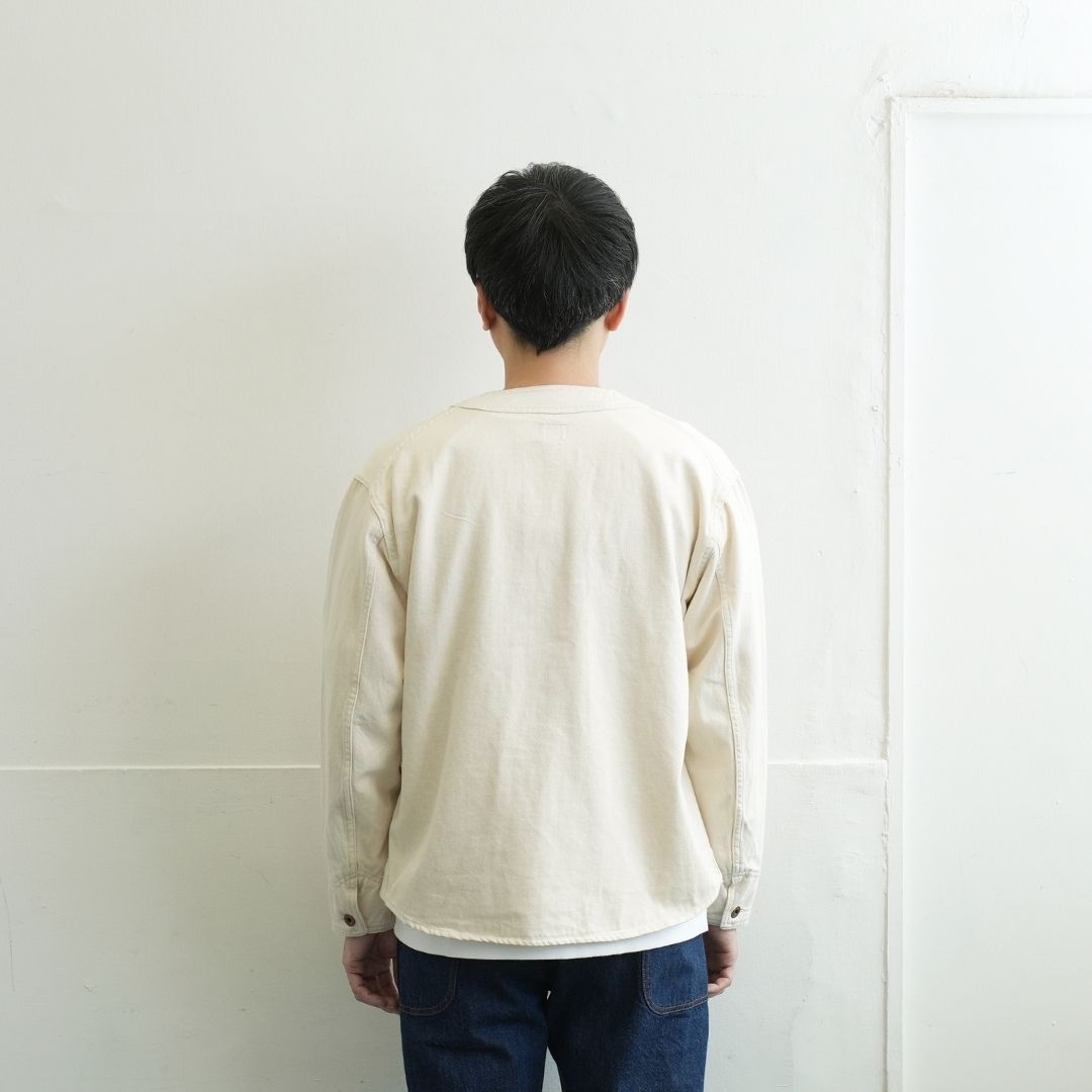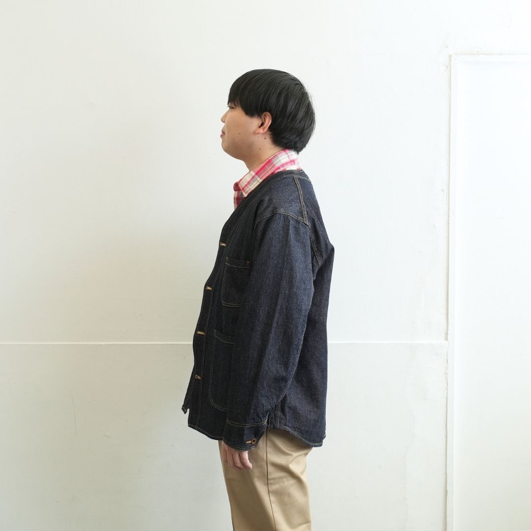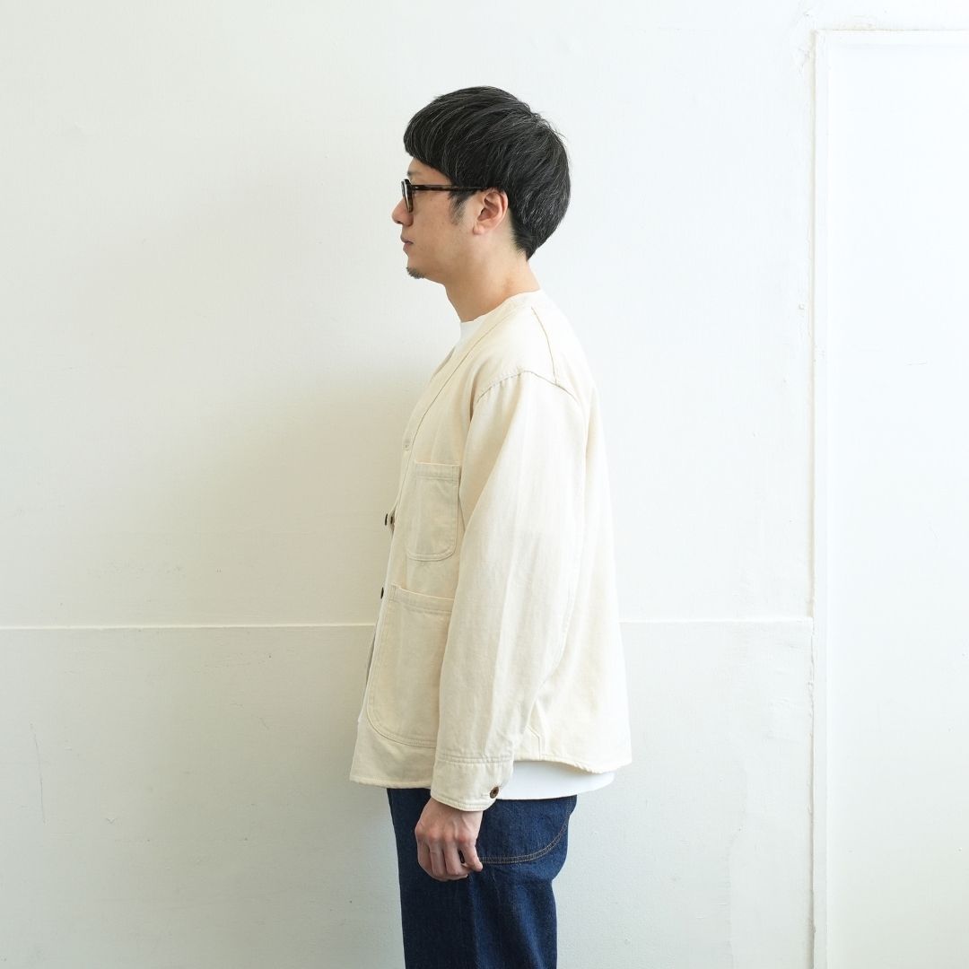 ノーカラーになることで、カーディガン感覚で手に取っていただきやすく、シルエットも中にスウェットなども着込んでいただけますのでインナー次第で幅広い期間でご活用いただけます。