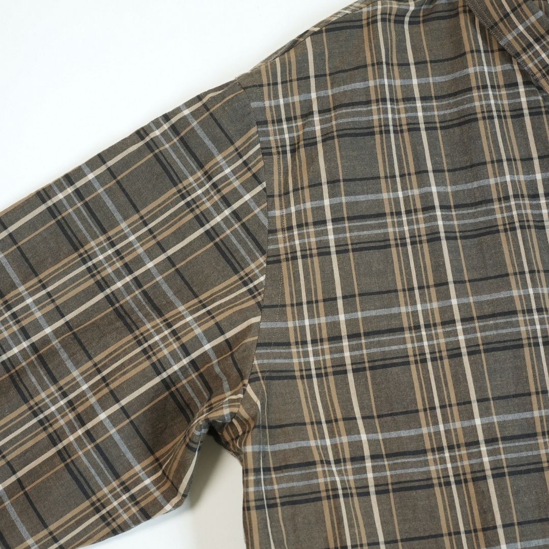 商品を平置きにして、首の付け根部分(写真左)から袖先(写真右)までの長さをはかっています。
