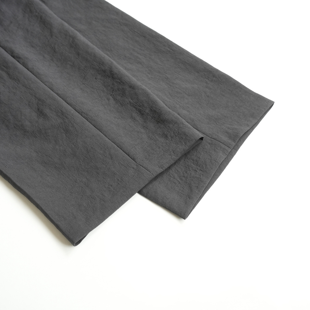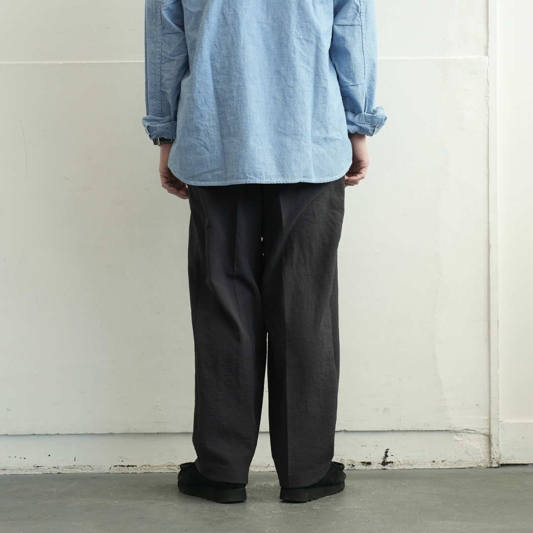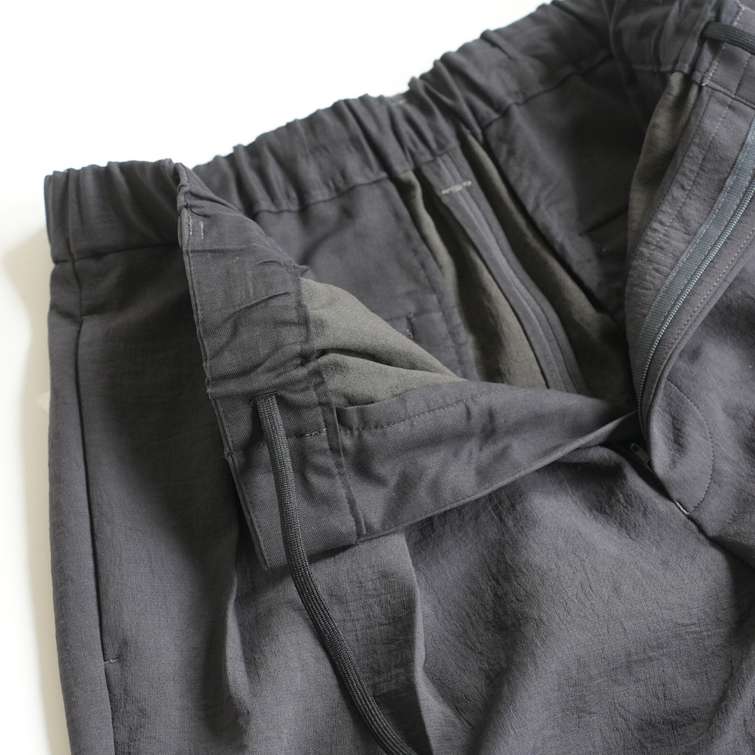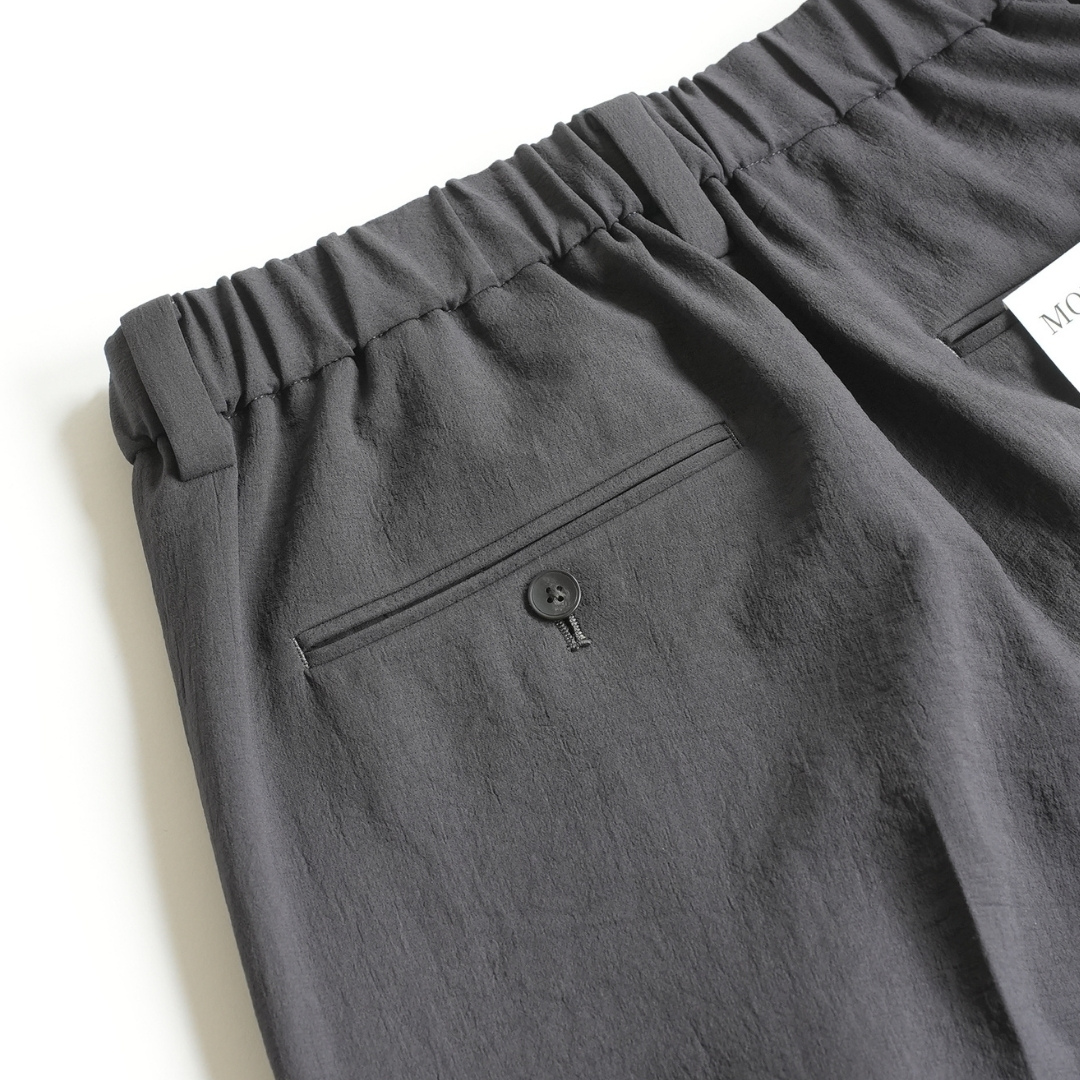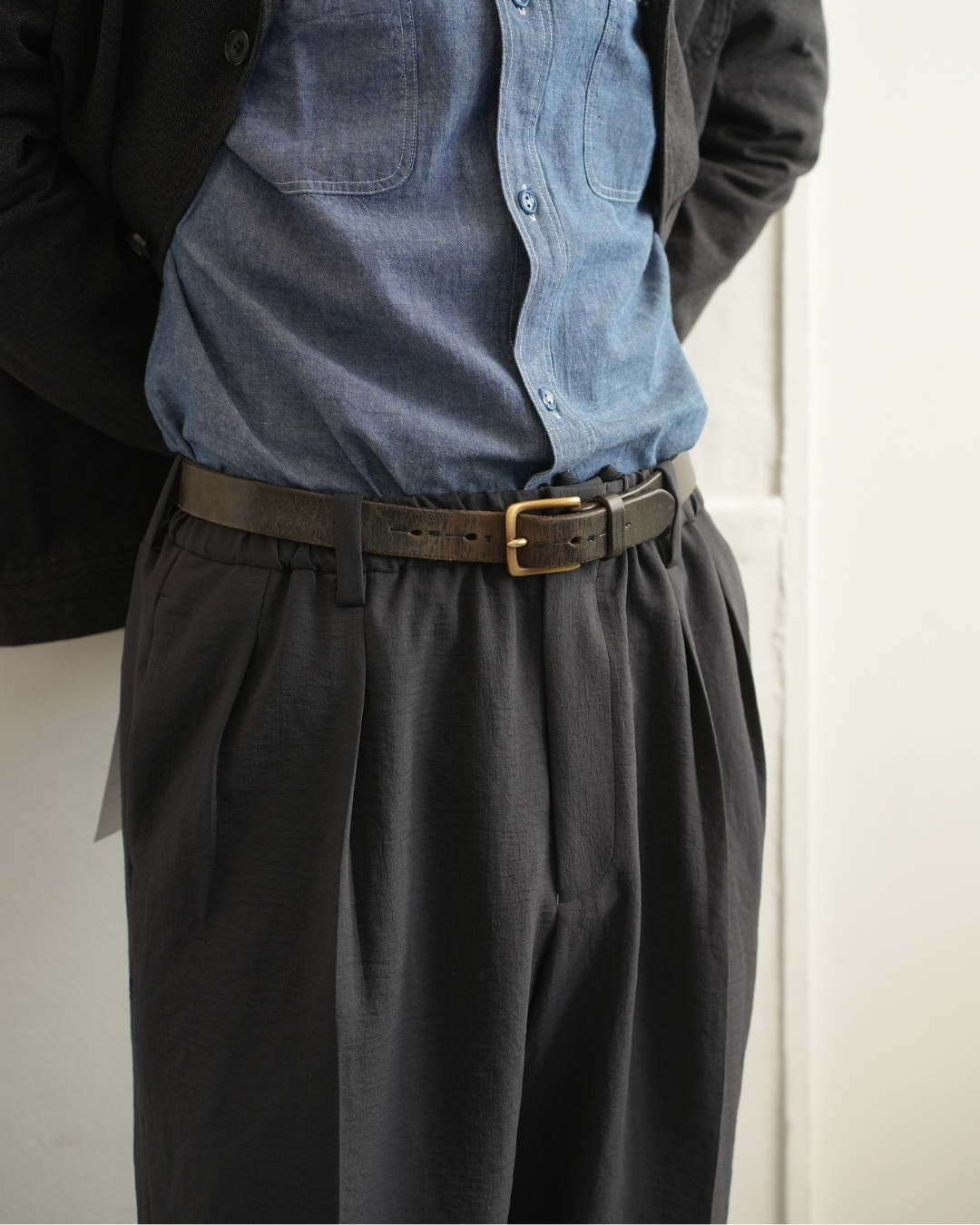 ベルトで腰位置を固定する。穿いた時のウエスト位置が変わると長さも変わってしまいます。ベルトで固定する事が大切です。
