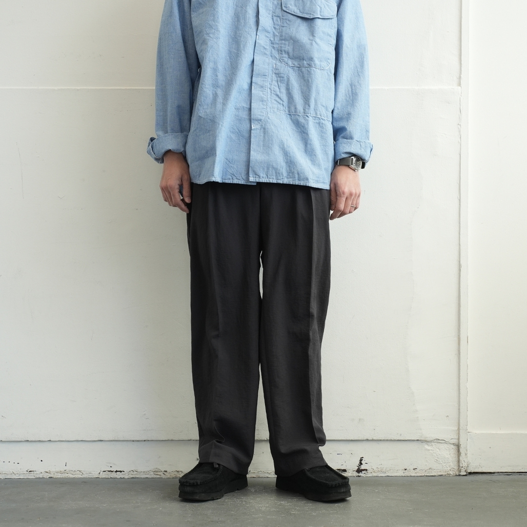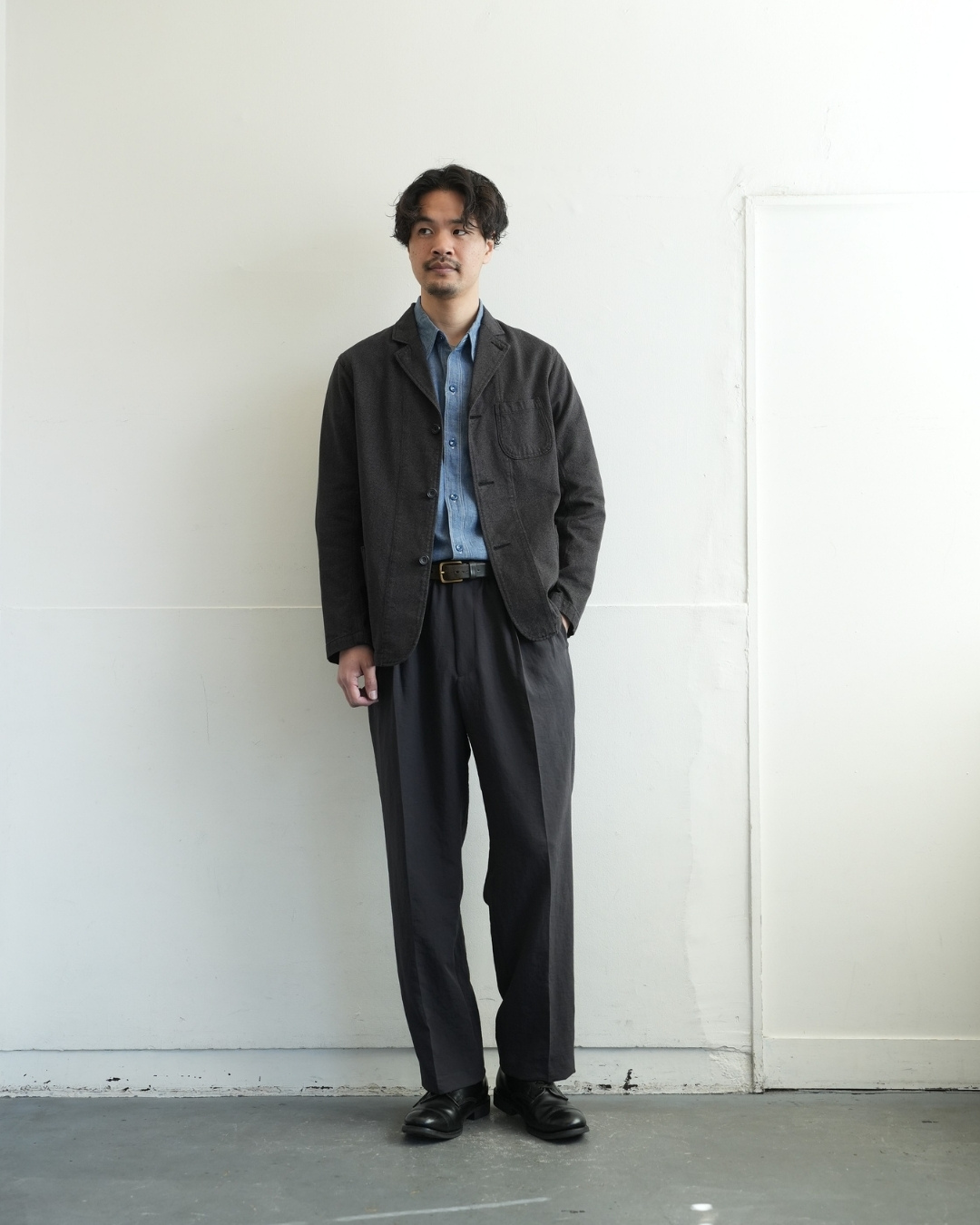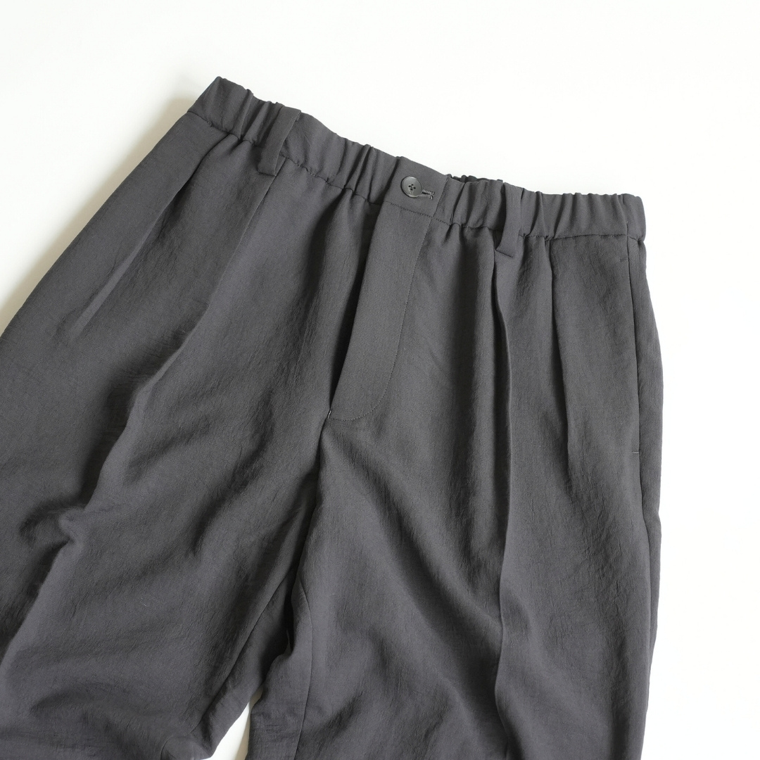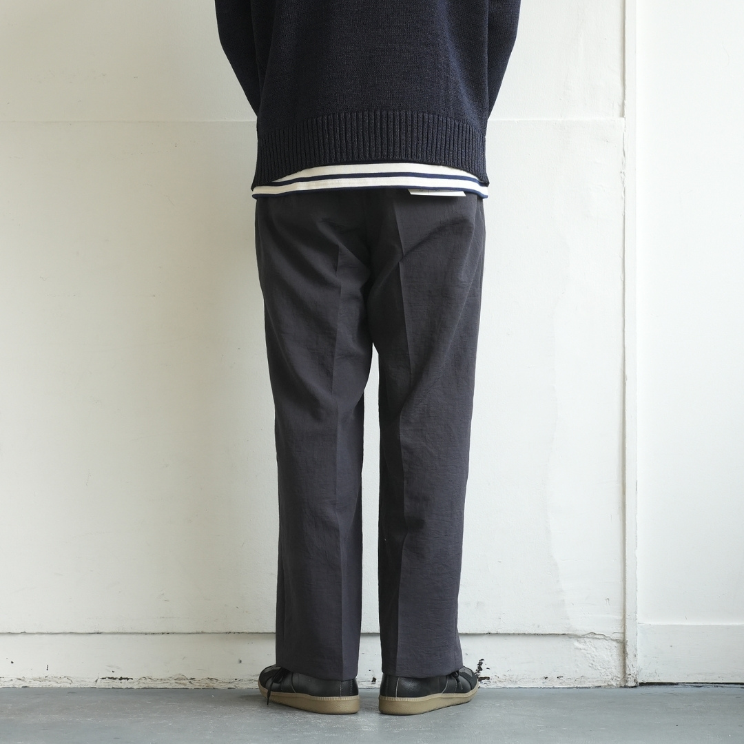 ベルトで腰位置を固定する。穿いた時のウエスト位置が変わると長さも変わってしまいます。ベルトで固定する事が大切です。
