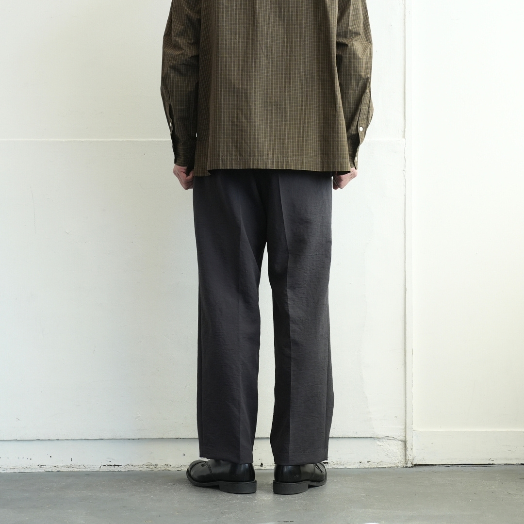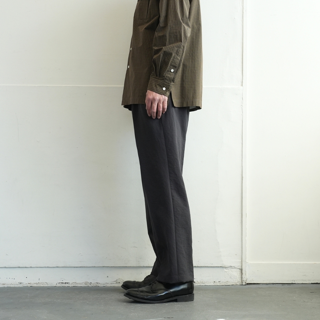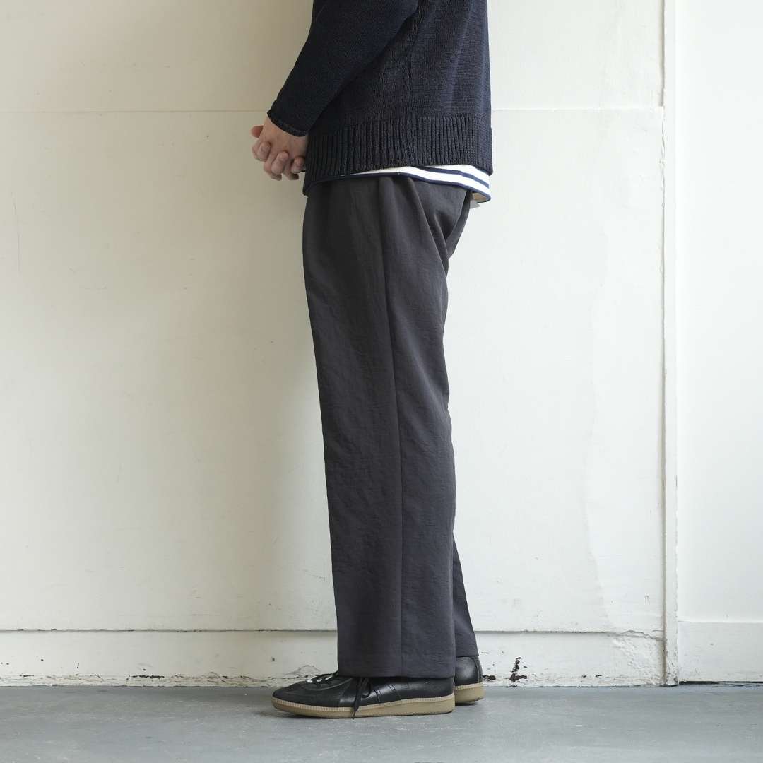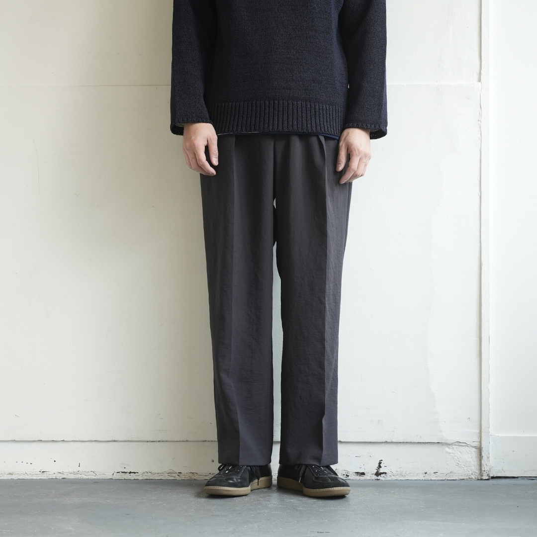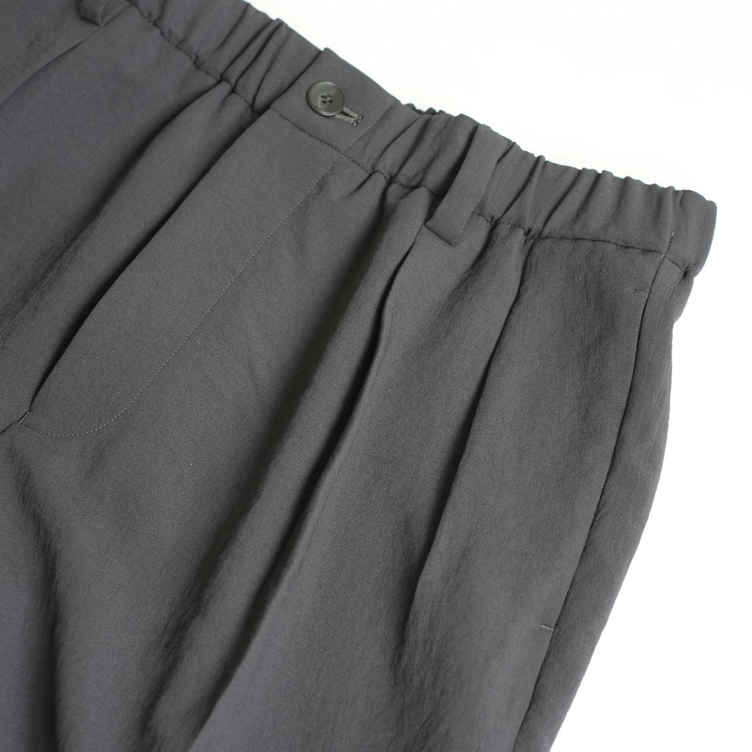 ベルトで腰位置を固定する。穿いた時のウエスト位置が変わると長さも変わってしまいます。ベルトで固定する事が大切です。
