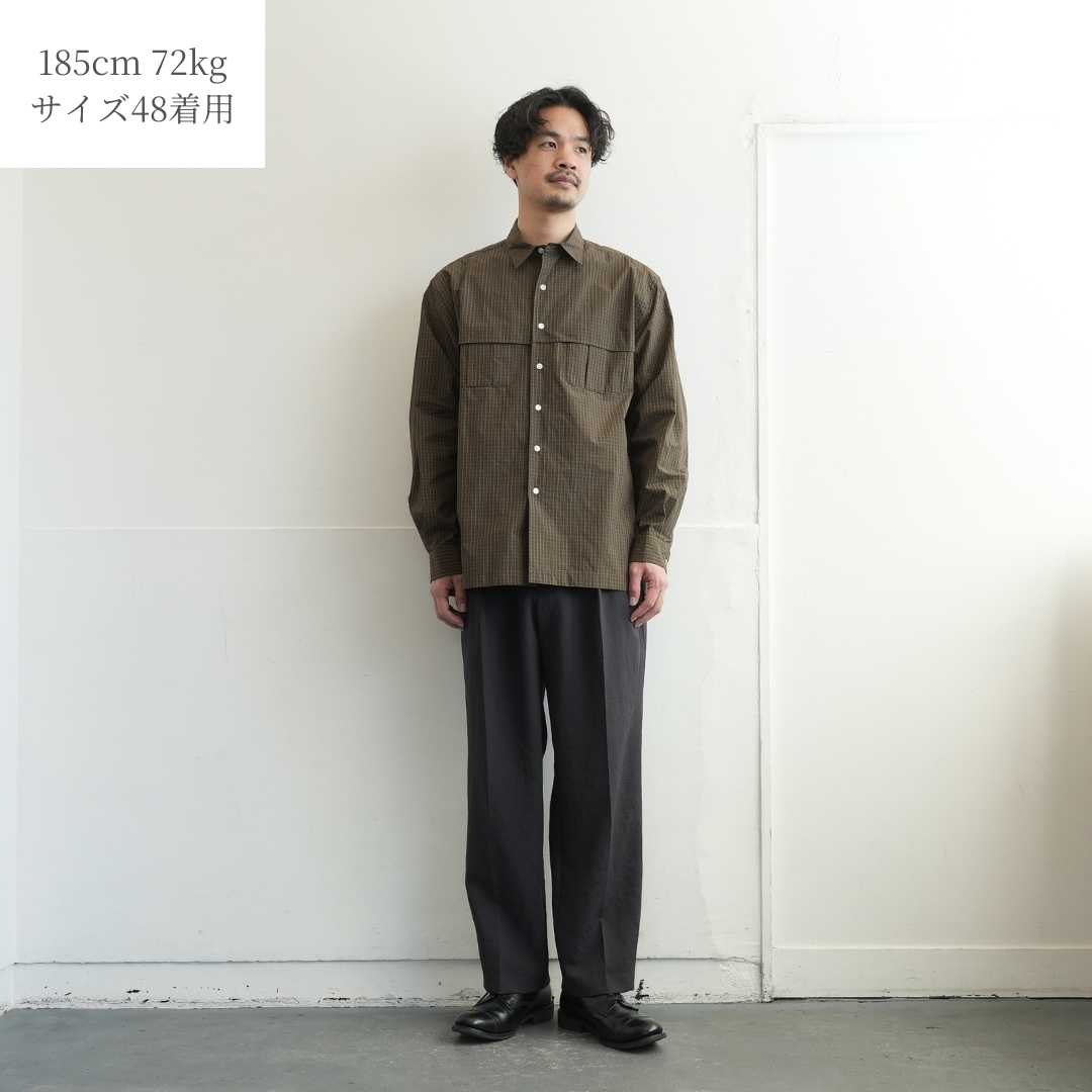 商品を平置きにして、両肩の直線距離をはかっています。