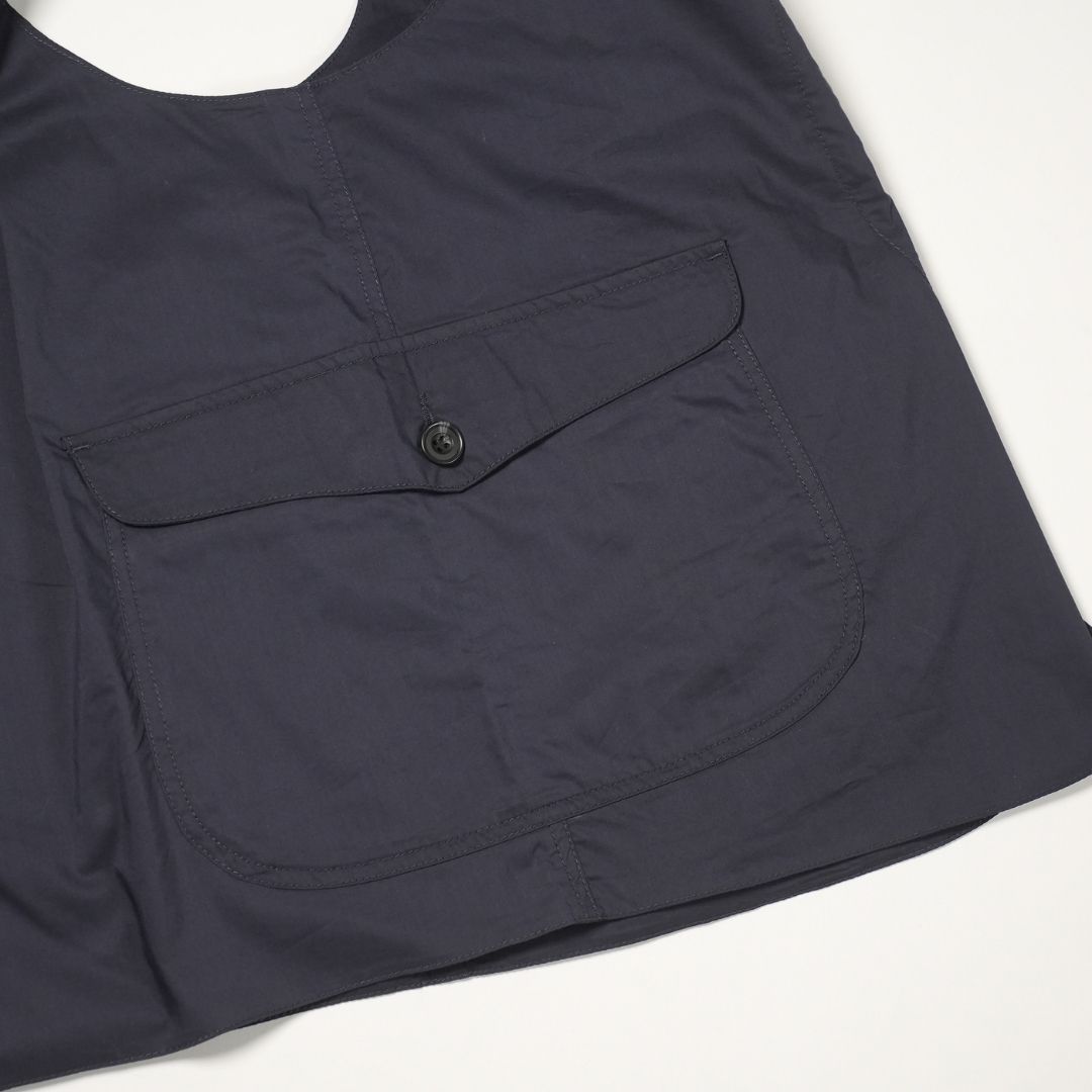 中でも目を引くのが、身頃正面に配されたハーフムーンポケット。クラシックな意匠でありながら、コーディネートのさりげないアクセントとしても機能する、実にバランスの良いデザインです。