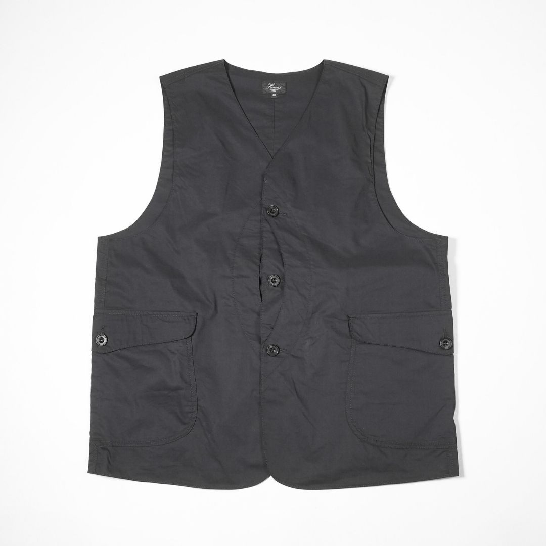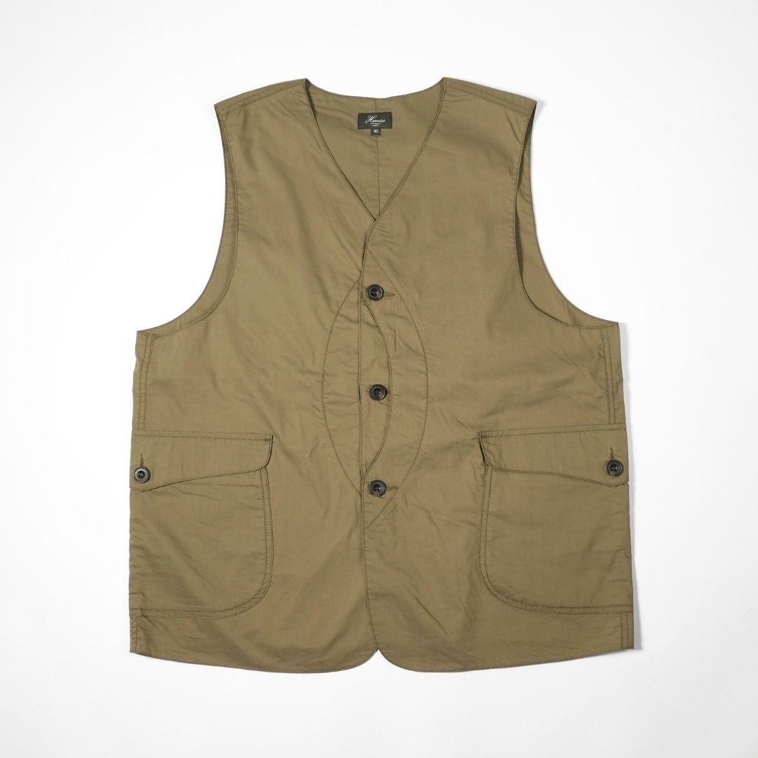 ヴィンテージのハンティングベストをベースにモディファイした一枚。無骨なワーク由来のディテールを踏襲しながらも、現代の装いに馴染むよう丁寧に再構築されています。