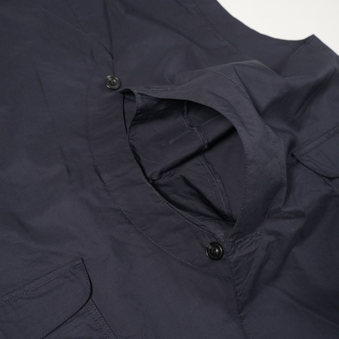 生地には高機能素材T400を混紡したタイプライタークロスを採用。軽さのある薄手素材でありながら、適度なハリと形状安定性を兼ね備えています。軽快な着心地と扱いやすさが魅力で、春や秋のレイヤードスタイルに特に重宝する一枚です。