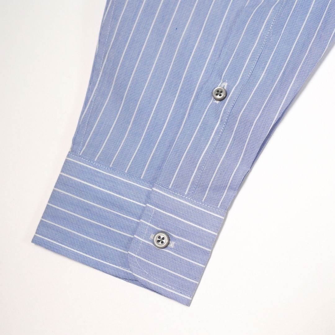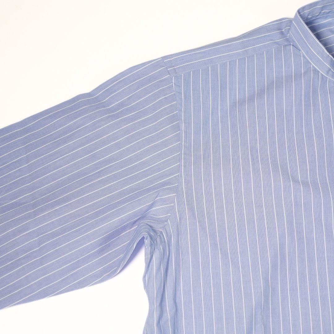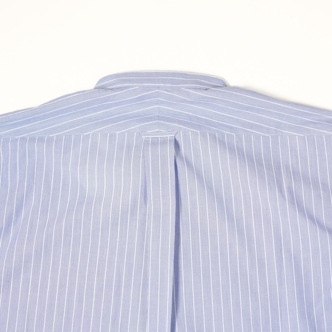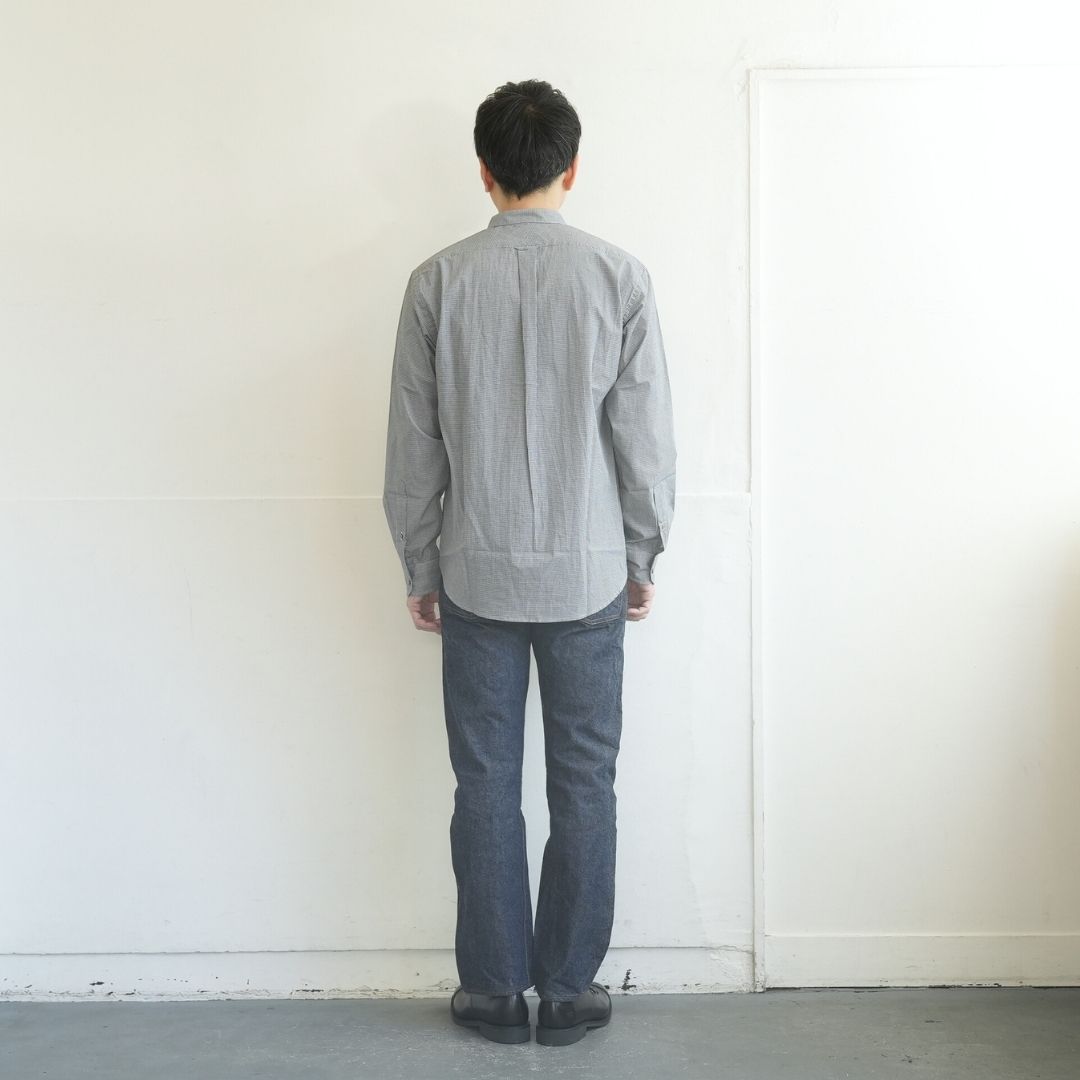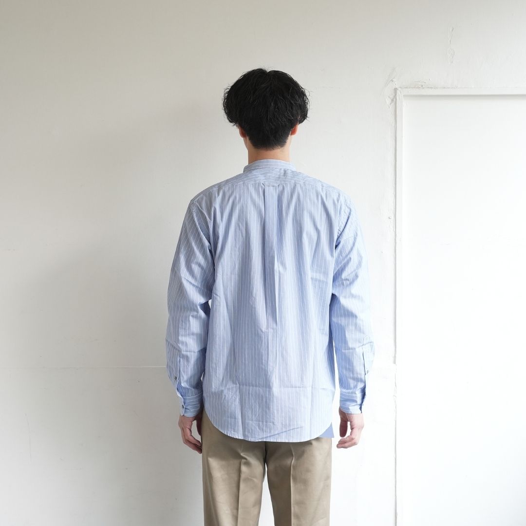 襟元はすっきりとしたバンドカラー仕様。レギュラーカラーに比べて柔らかい印象になり、ジャケットのインナーとしても収まりが良く、また一枚で着た際にも程よい抜け感を演出してくれます。