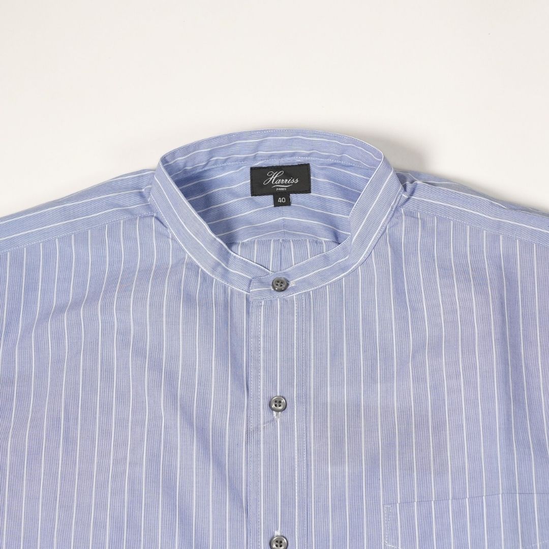 シャツの仕立てに定評のあるハリスより、今季の新作バンドカラーシャツが届きました。ブランド定番の「コンフォートフィット」と呼ばれるシルエットを採用した一枚で、肩肘張らずに着られる適度なゆとりを持ちながらも、決してだらしなく見えない絶妙なバランスが魅力です。奇をてらわないオーセンティックなシルエットだからこそ、生地の上質さや丁寧な縫製が素直に際立ちます。