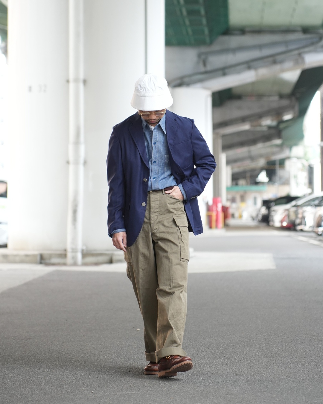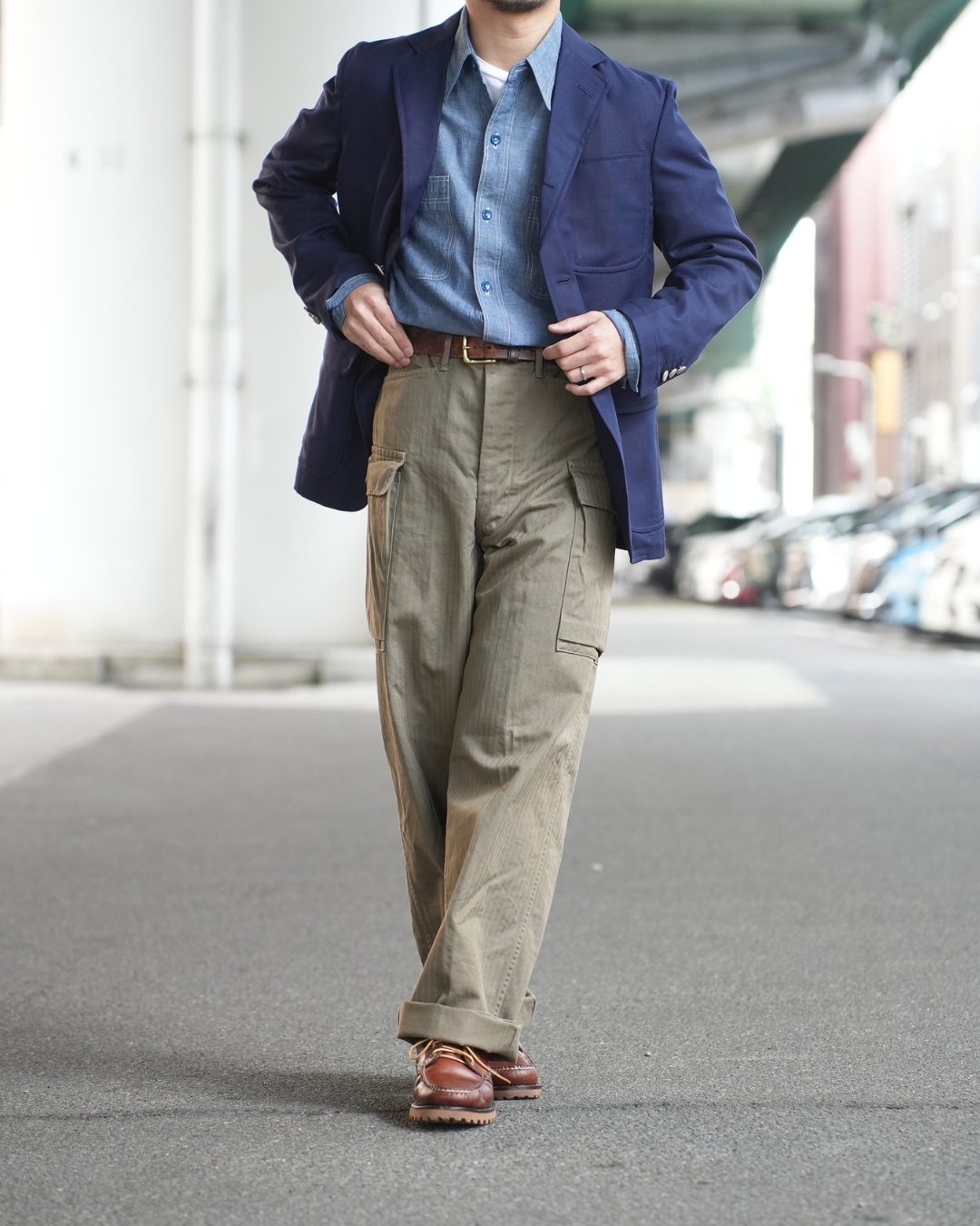 デザインソースは、1940年代の米陸軍カーゴパンツ「M-43」。ミリタリーパンツの中でも無骨さと実用性を兼ね備えた名作を、WORKERS流に再構築した一本です。ここ数年あえてカーゴパンツの仕入れを絞っていた中で、これは外せないと思わせてくれる存在でした。