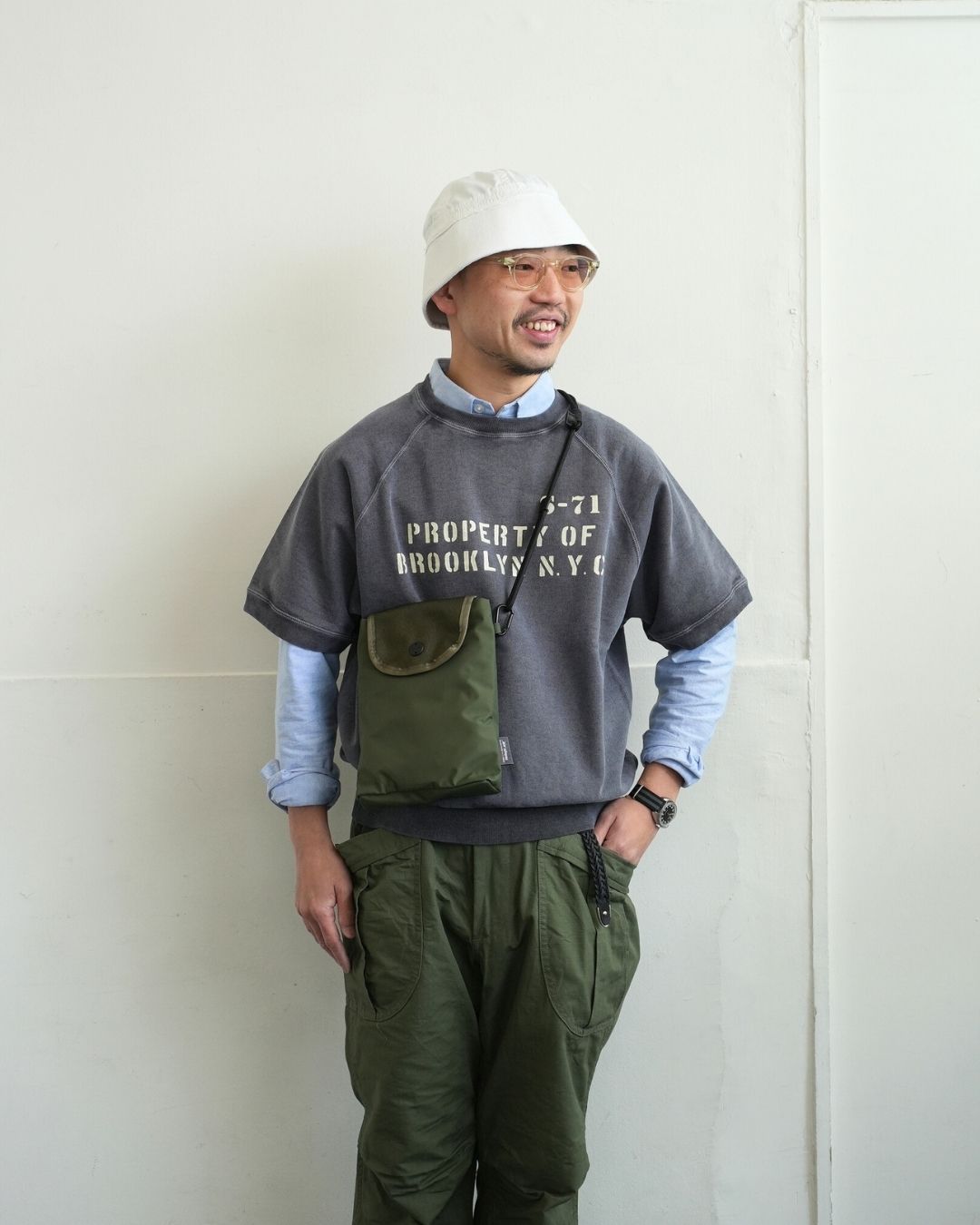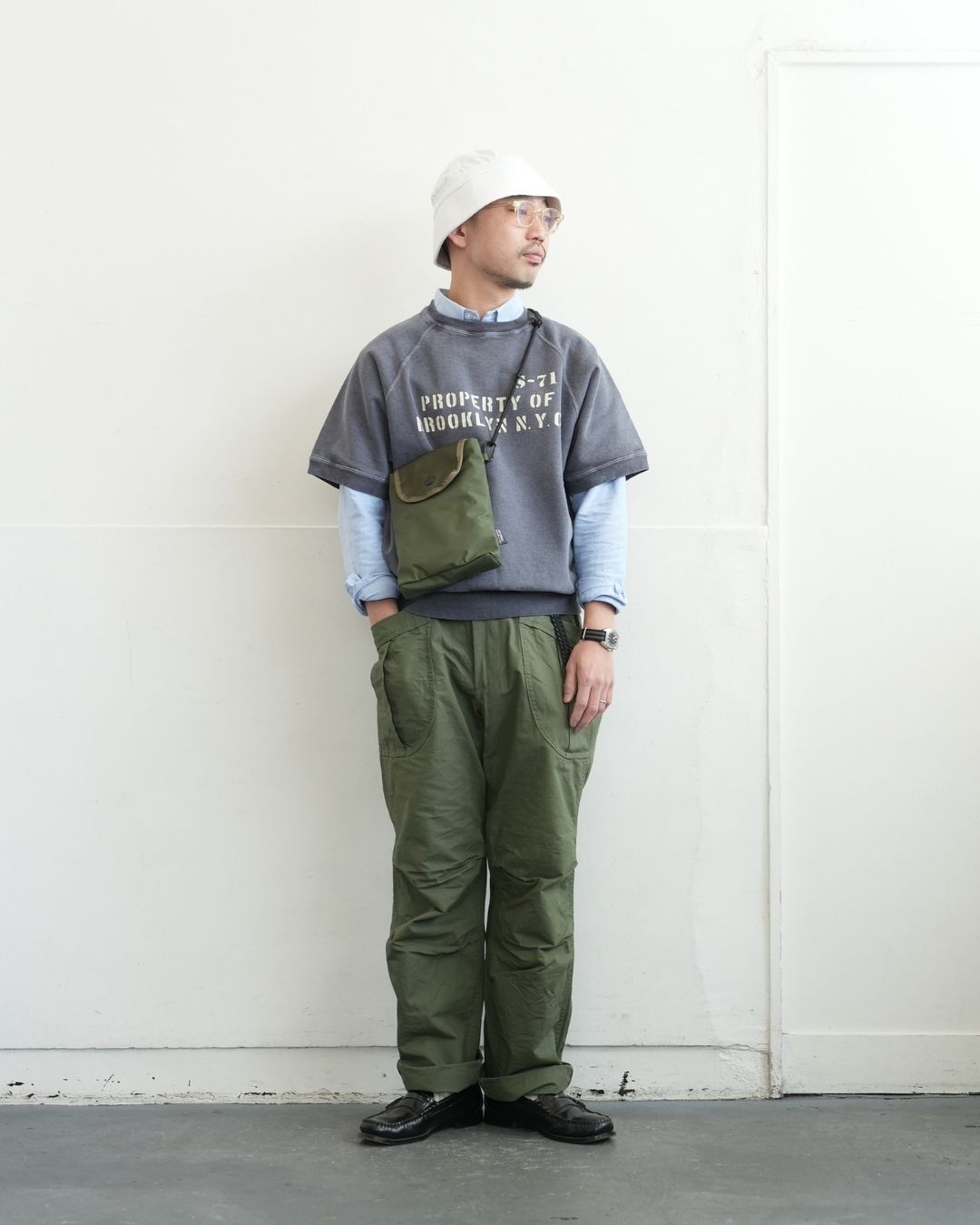 ベルトで腰位置を固定する。穿いた時のウエスト位置が変わると長さも変わってしまいます。ベルトで固定する事が大切です。