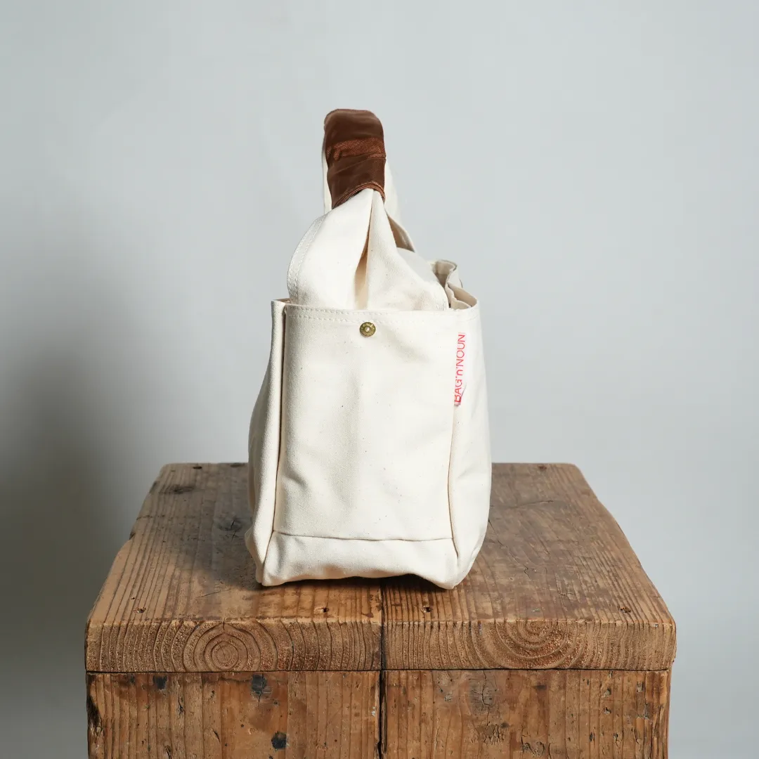 生地はバッグンナウンの定番生地として長くリリースされている中肉厚の9号帆布。合わせる洋服、コーディネートを問わないNATURALで使うごとに風合いが良くなり、経年変化も合わせてお楽しみいただけますよ。
