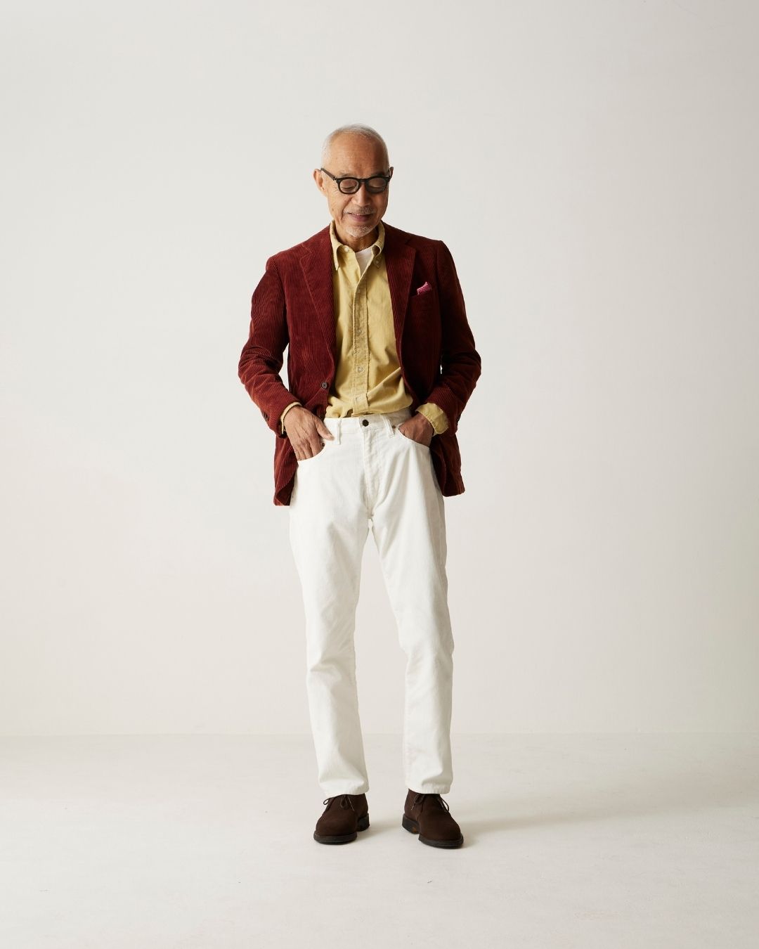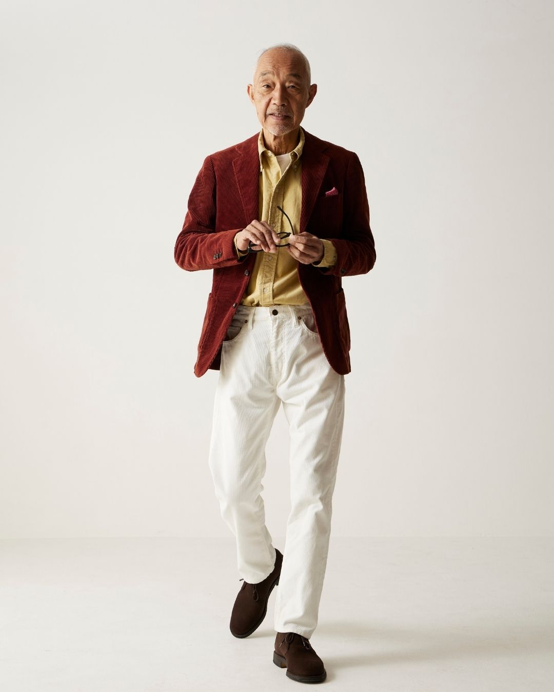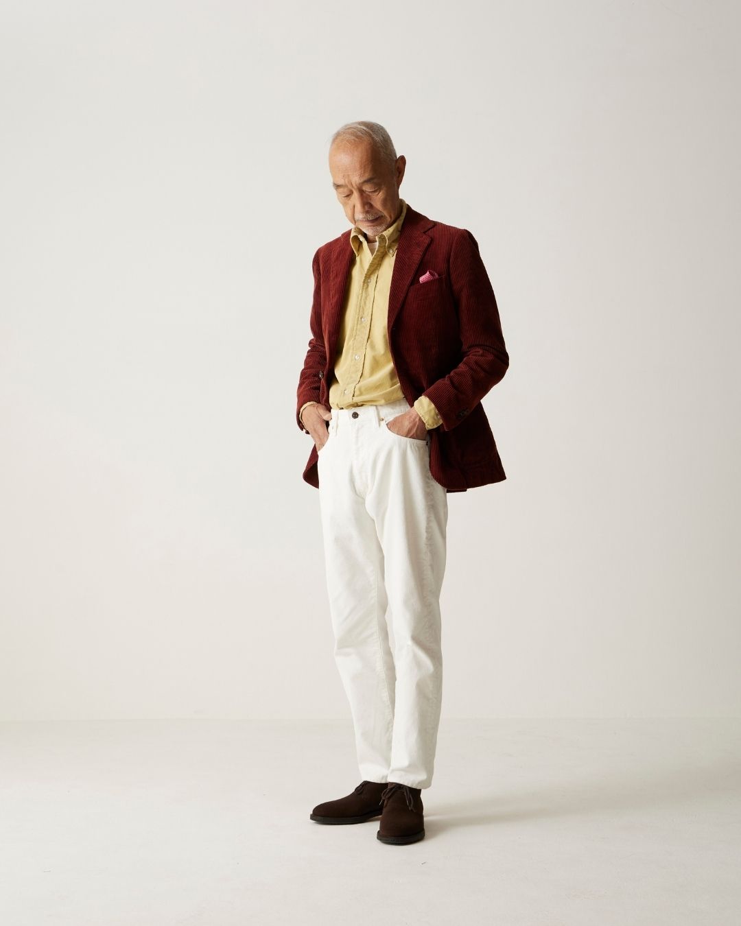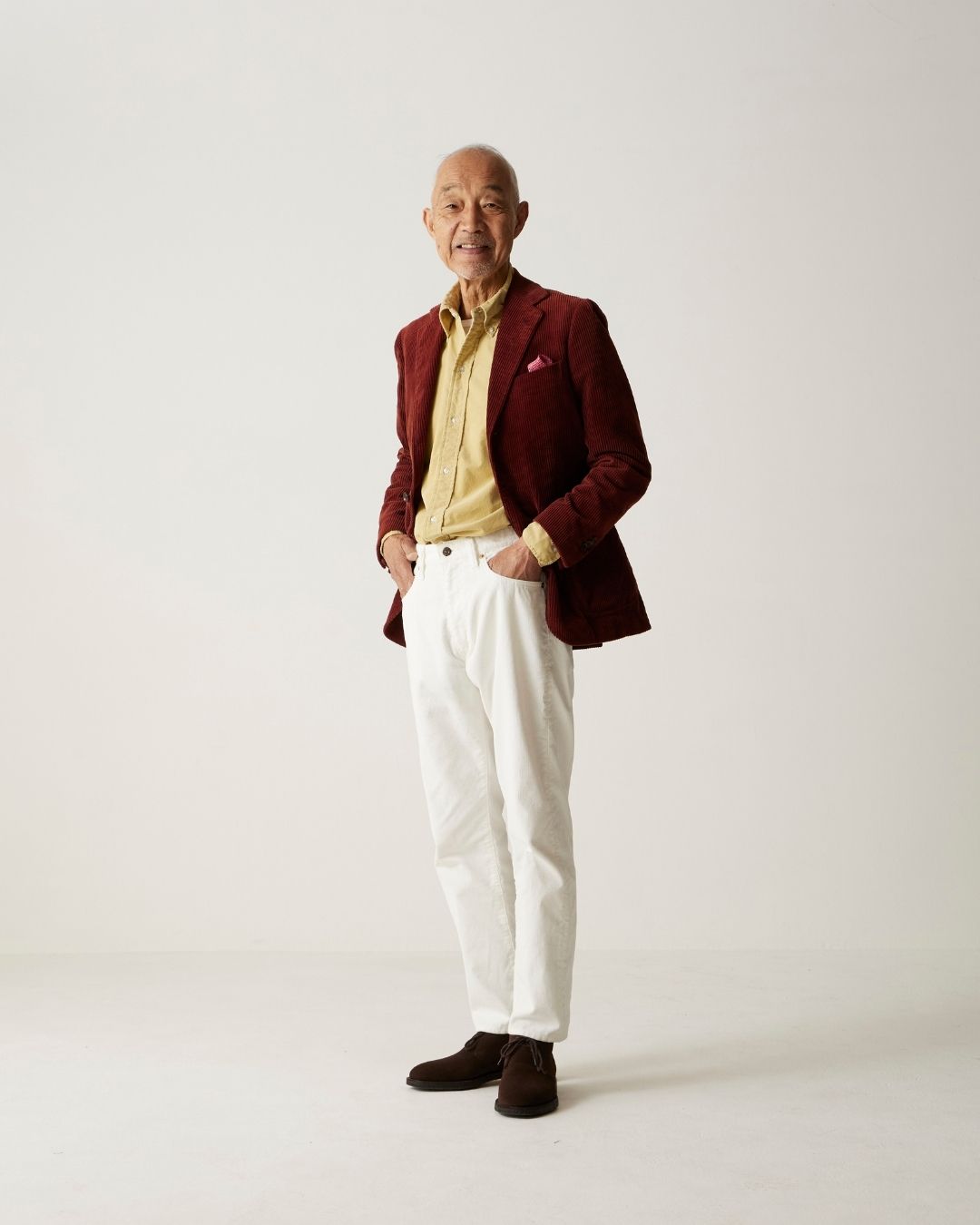 21Wの超細畝のコーデュロイ生地。適度なコシはありますが、ソフトな着心地でジャケットとも合わせやすい仕上がりです。