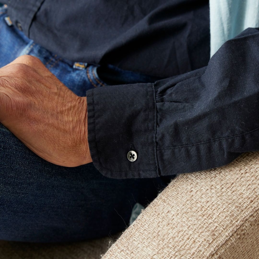ベルトで腰位置を固定する。穿いた時のウエスト位置が変わると長さも変わってしまいます。ベルトで固定する事が大切です。