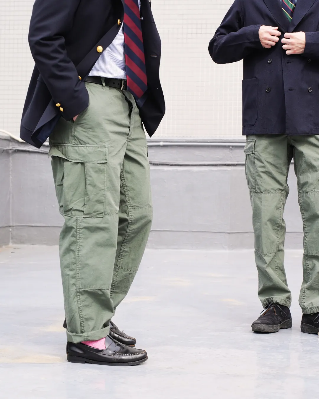 靴を履いて長さを決める。素足の状態で長さを合わせると靴を履いた時長さの見え方が異なります。合わせる靴を履いて長さを決めてください。