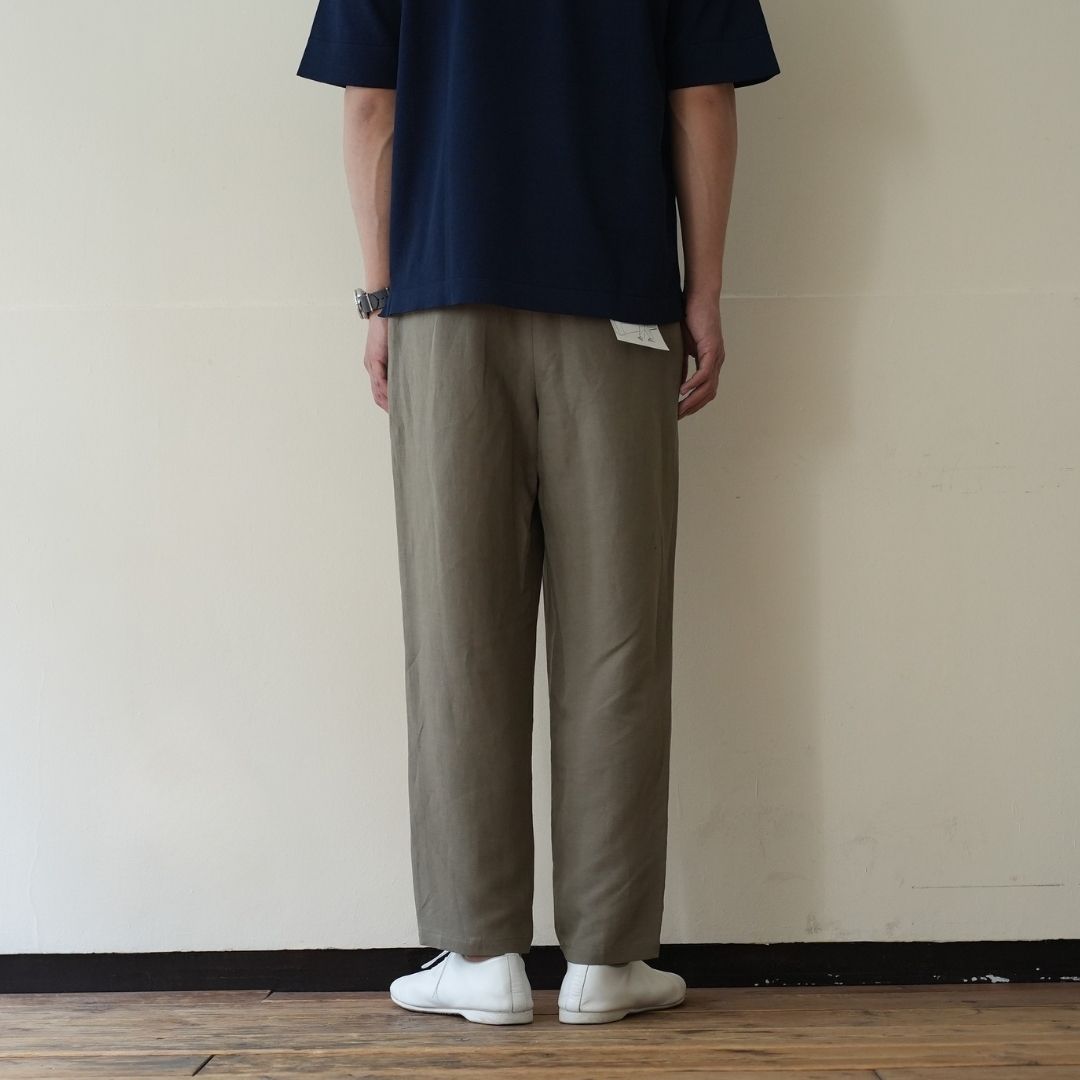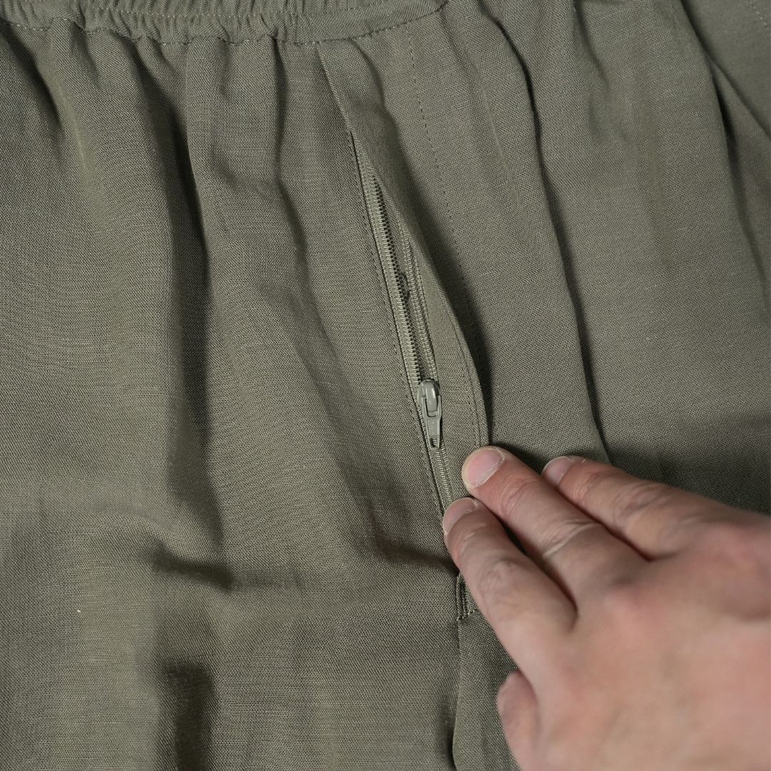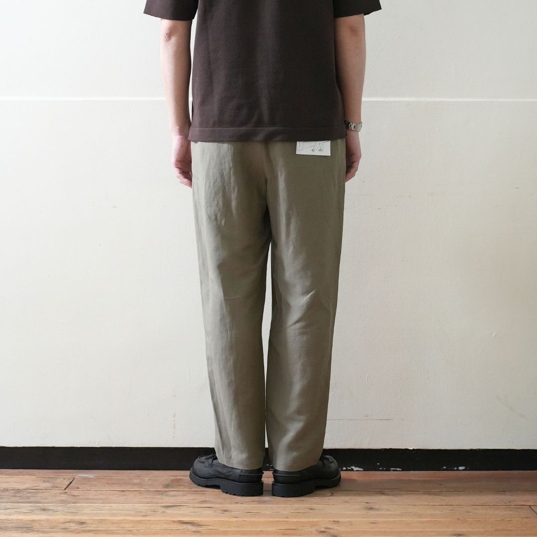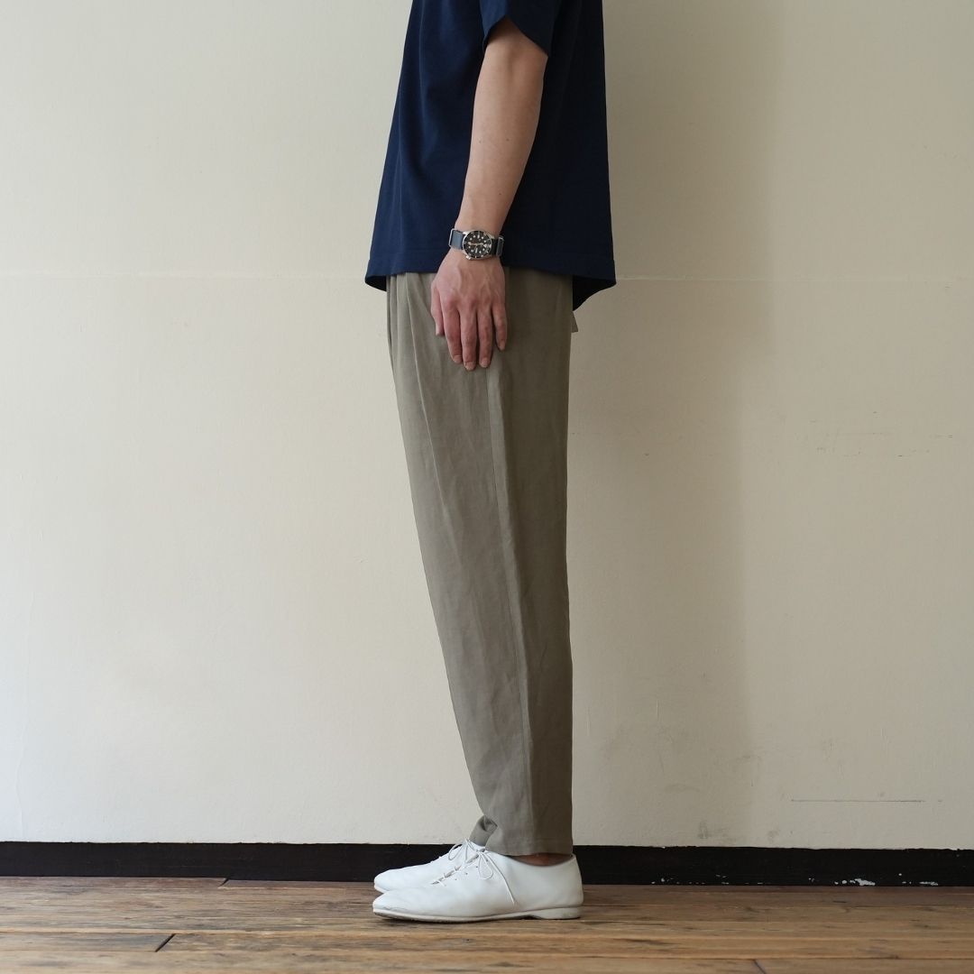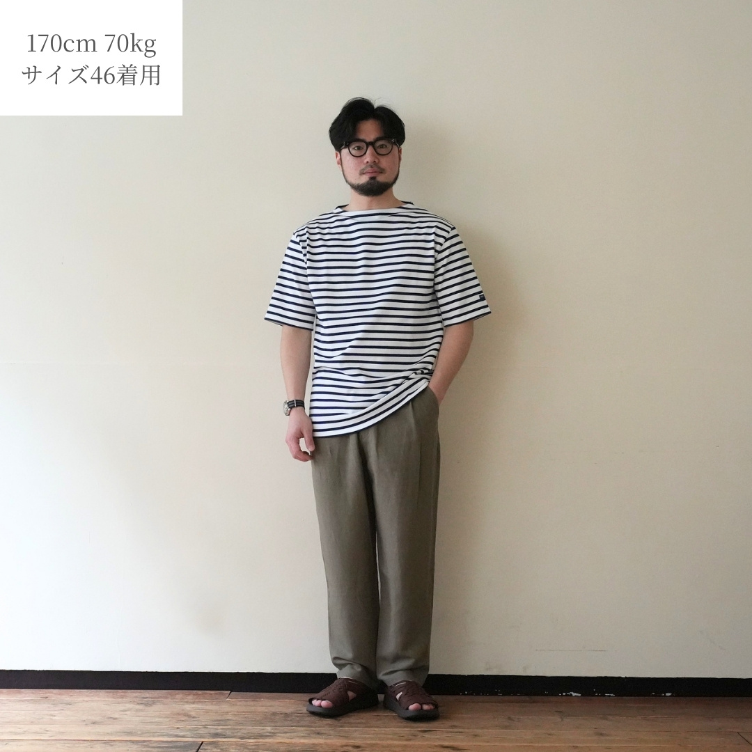 ベルトで腰位置を固定する。穿いた時のウエスト位置が変わると長さも変わってしまいます。ベルトで固定する事が大切です。