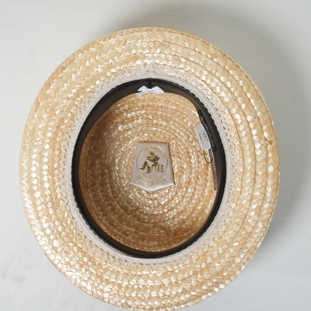 サイズはLとXLの2サイズ展開。素材が硬く、パナマハットのように大きく馴染むことはないため、被った際にしっかりと止まるサイズ選びがおすすめです。ゆとりがある場合は、帽子用の詰め物で調整していただくと快適にご着用いただけます。