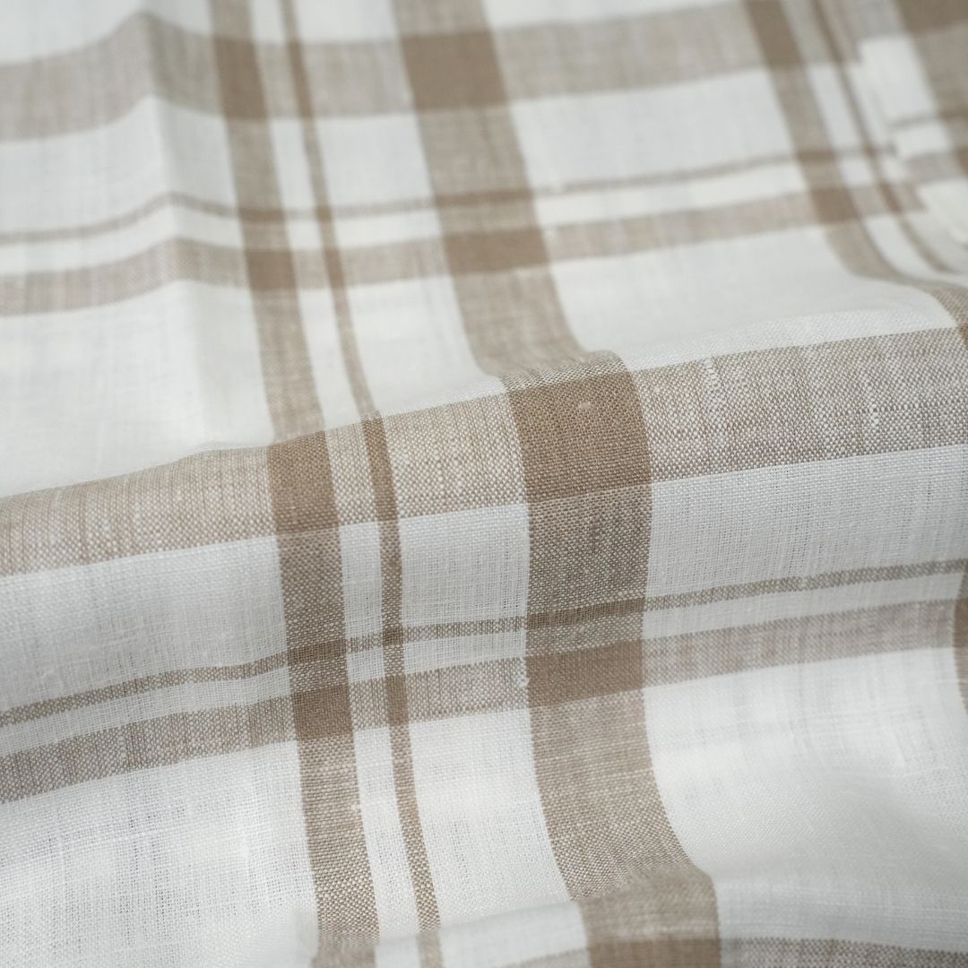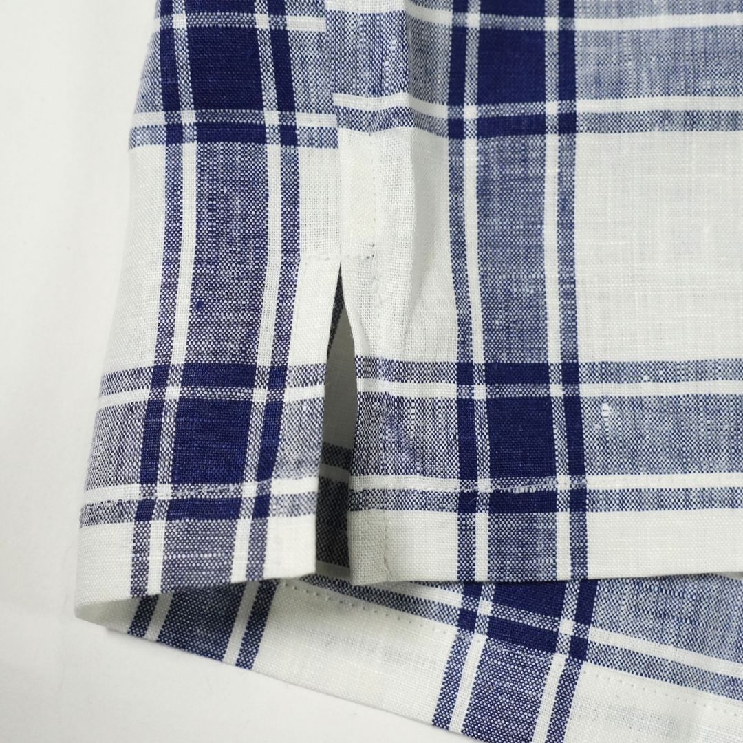 白をベースとしたチェック柄が、リネン特有の風合いと相まって清涼感のある表情に仕上がっています。