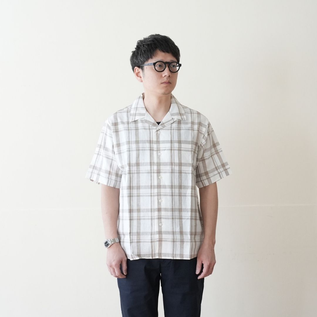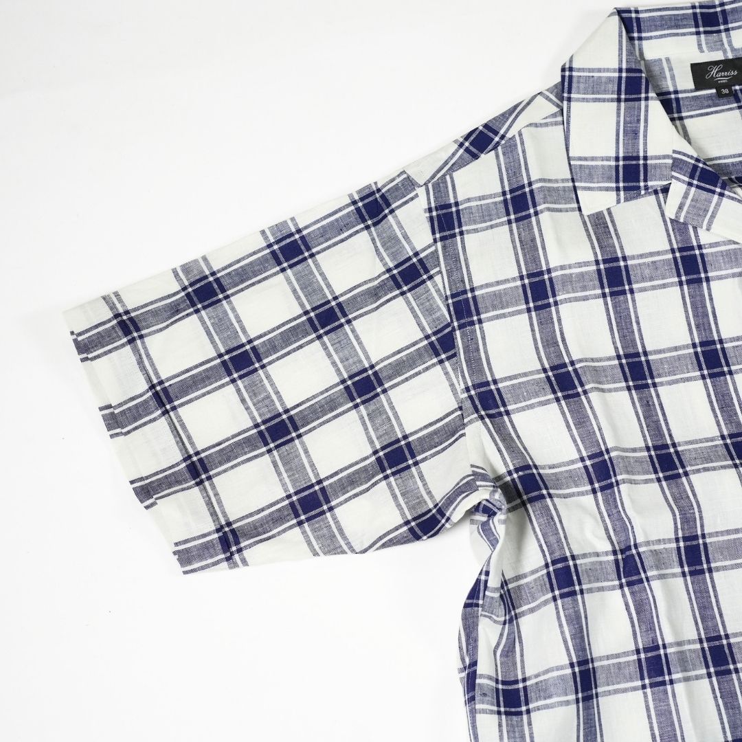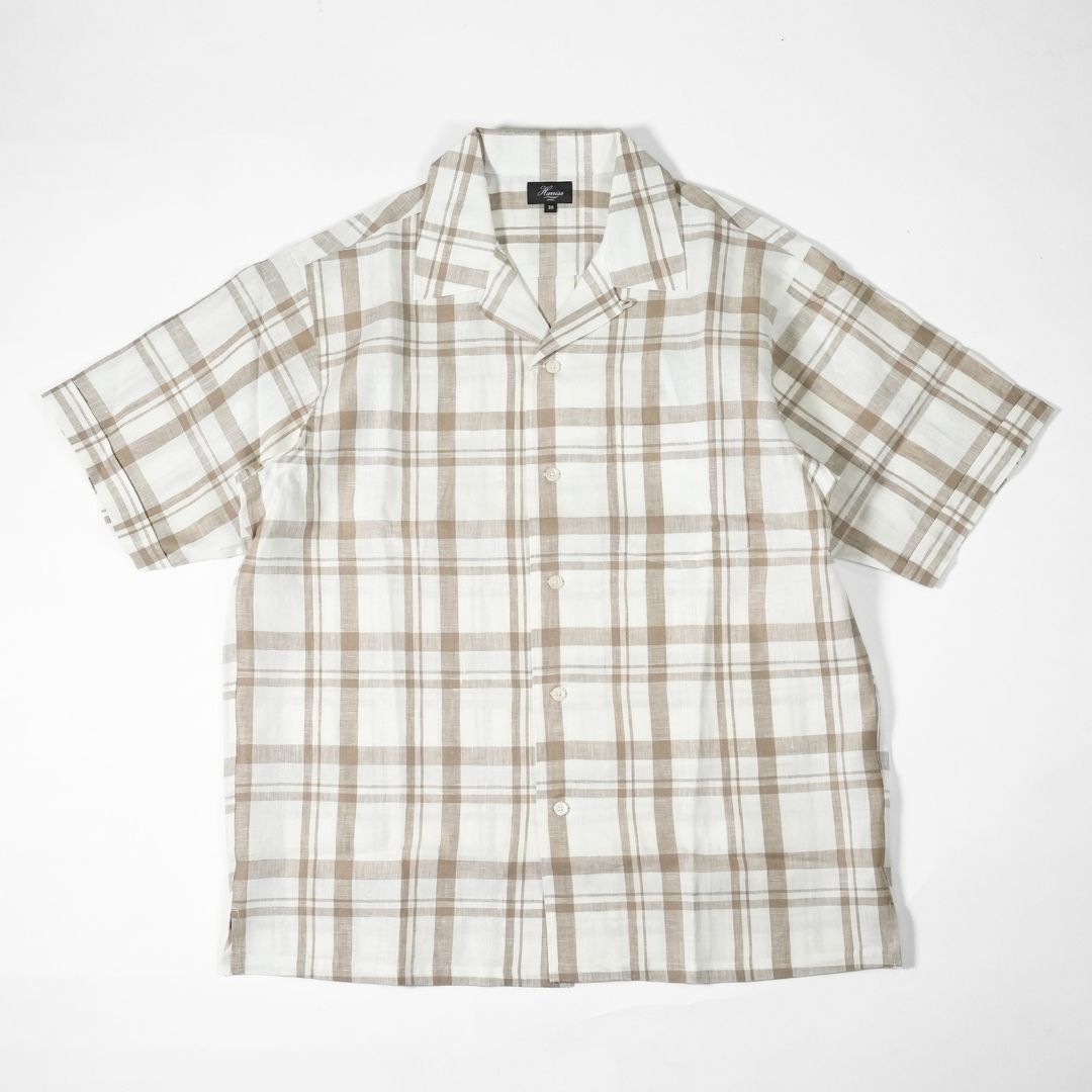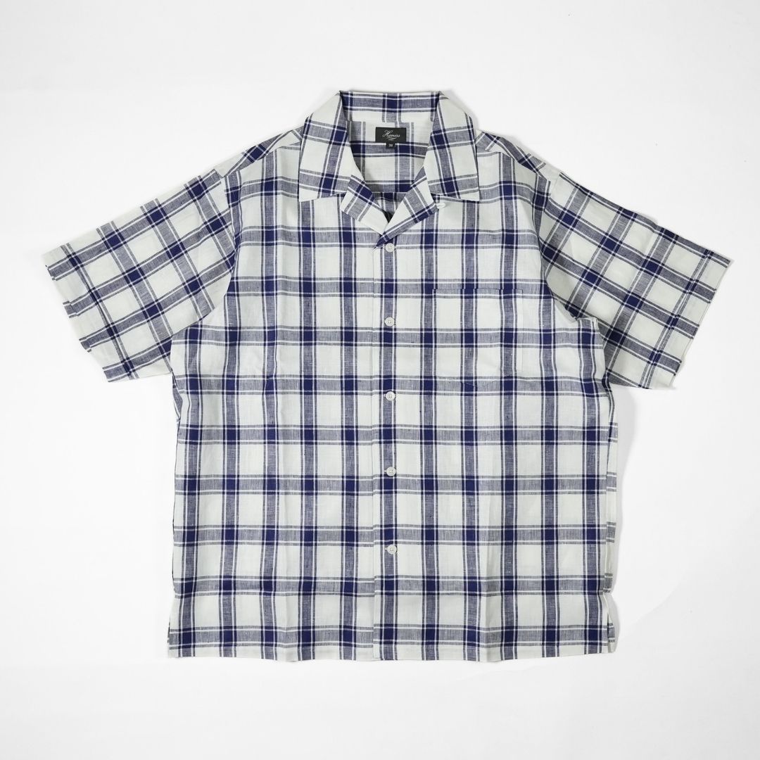 HARRISS(ハリス) オープンカラー半袖 リネンチェック