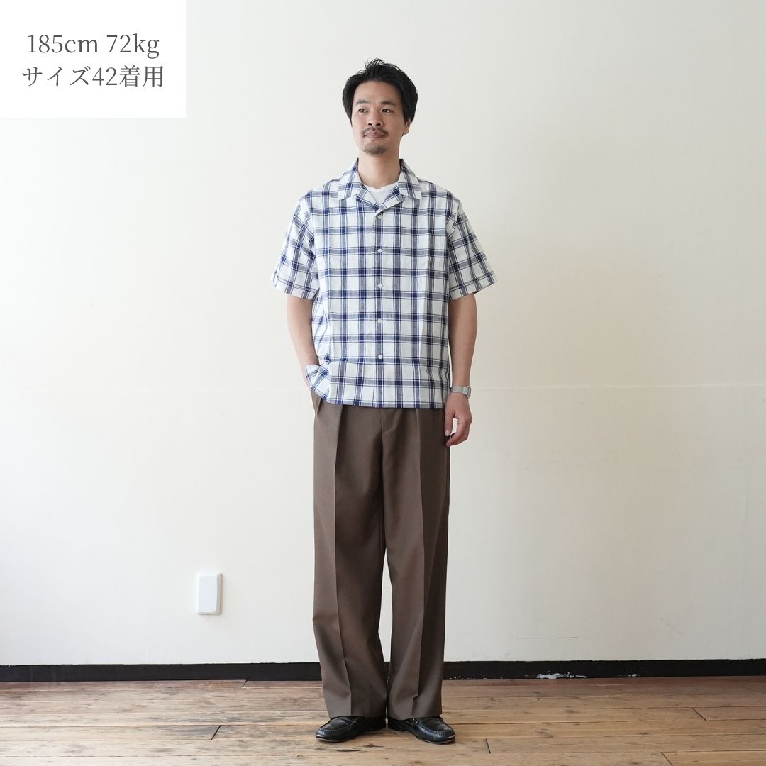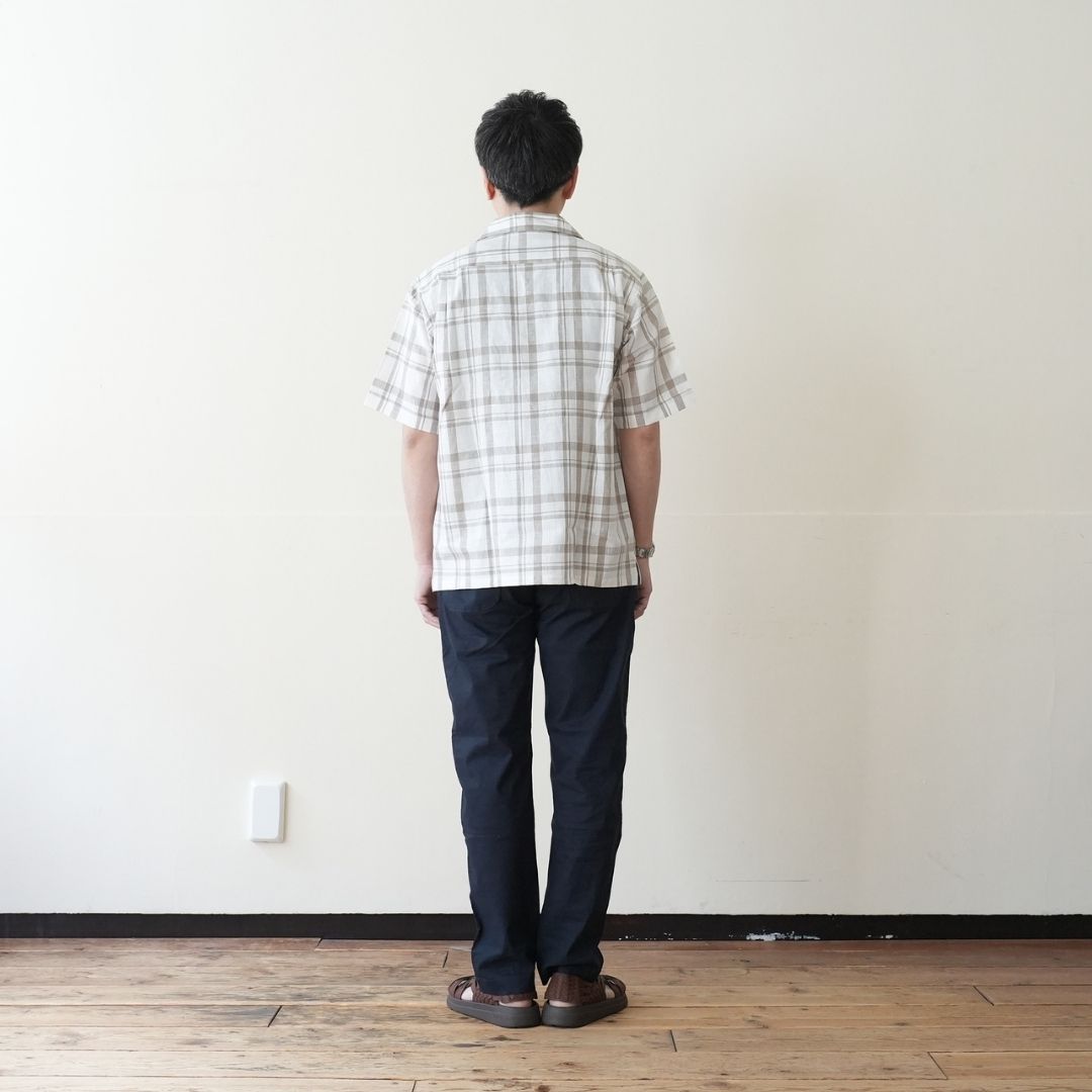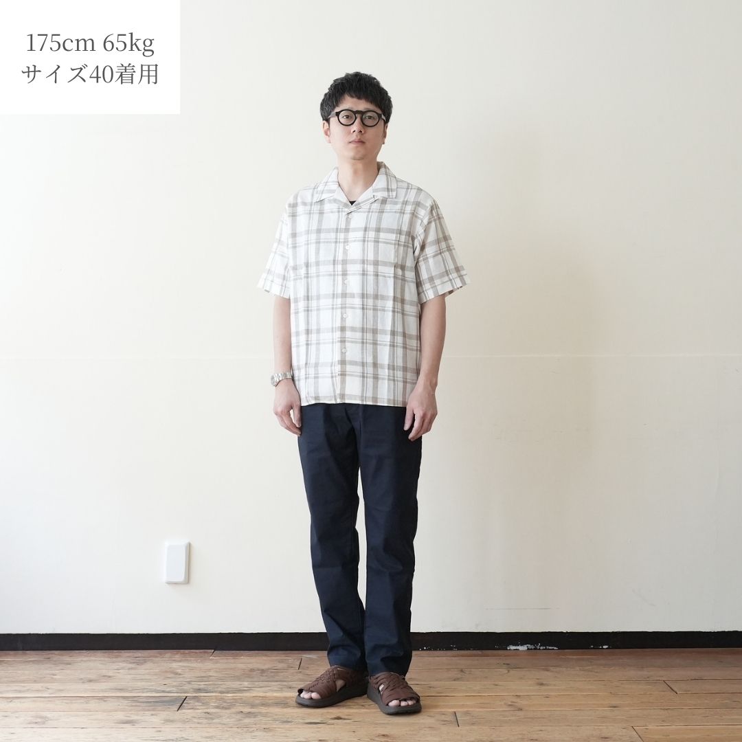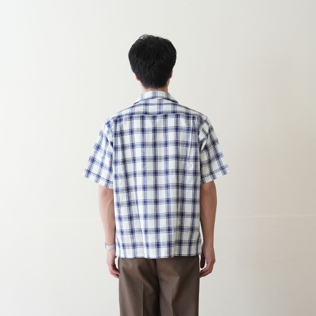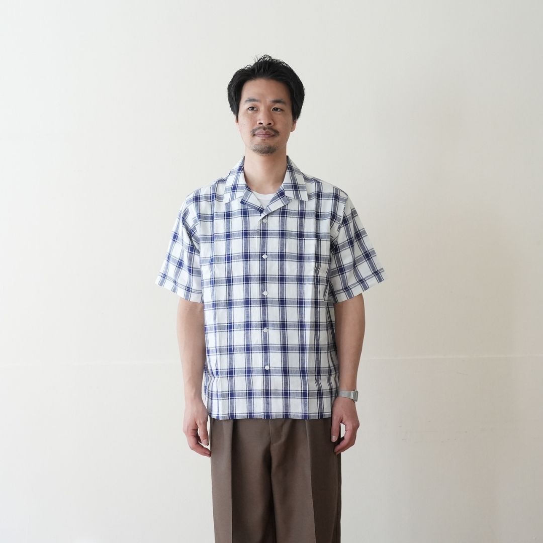 HARRISS(ハリス) オープンカラー半袖 リネンチェック