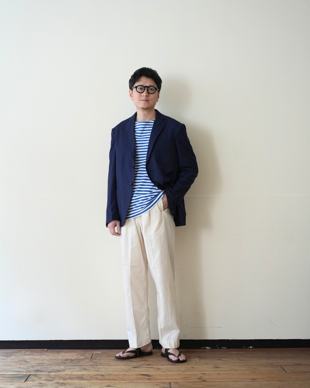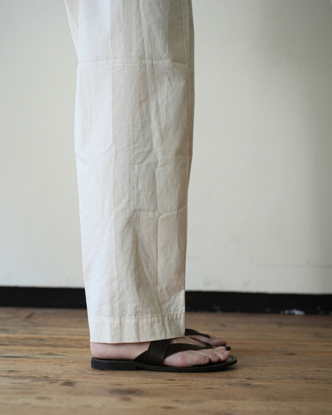 ベルトで腰位置を固定する。穿いた時のウエスト位置が変わると長さも変わってしまいます。ベルトで固定する事が大切です。